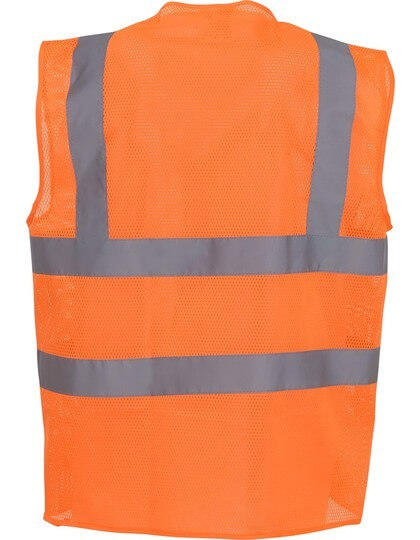 Spĺňa americkú národnú normu ANSI/ISEA 107-2004 a európsku normu EN ISO20471:2013 Trieda 2 | Vyrobená z priedušného ľahkého úpletu zo sitoviny pre ľahké odvádzanie potu v pracovnom prostredí s vysokou teplotou | 5 cm široké reflexné pruhy okolo tela a po jednom na každom ramene | Zapínanie vpredu na suchý zips Velcro®