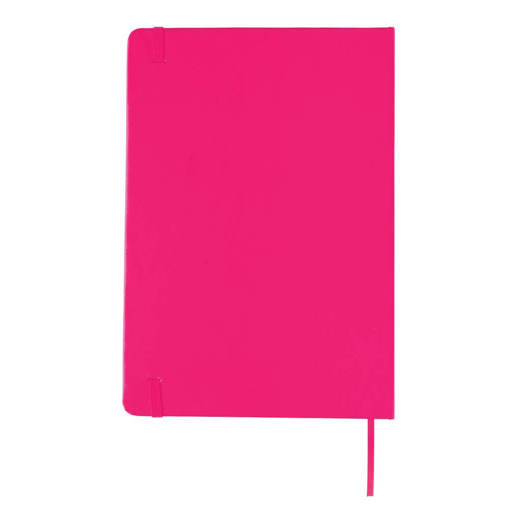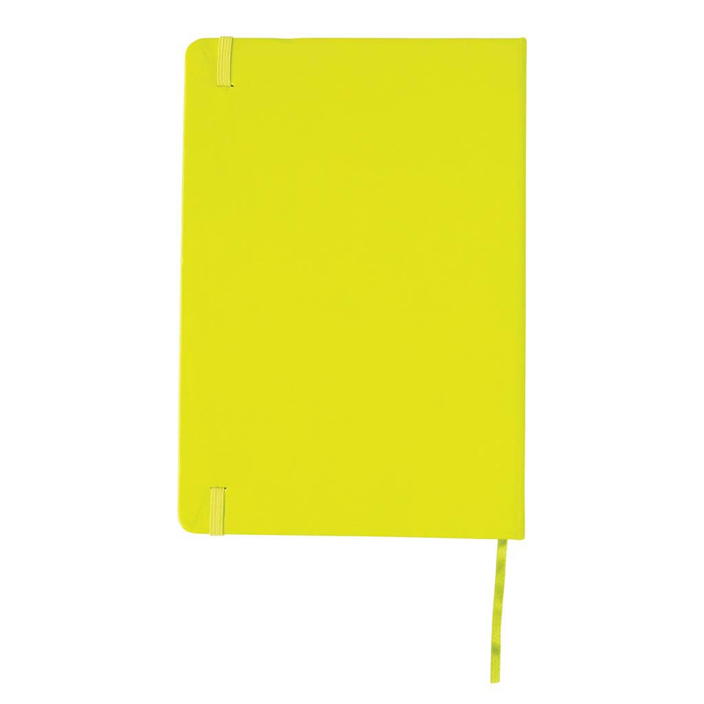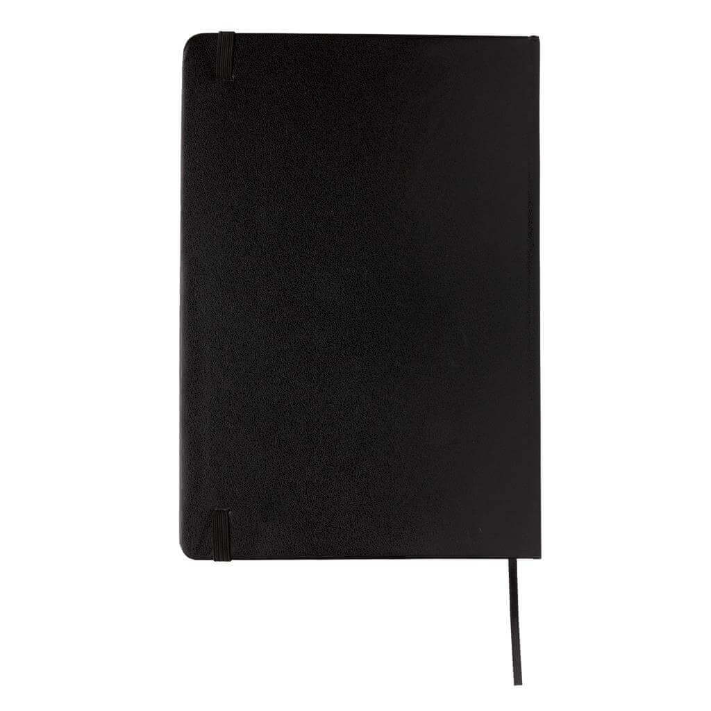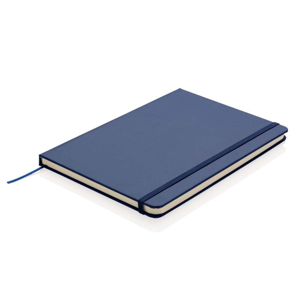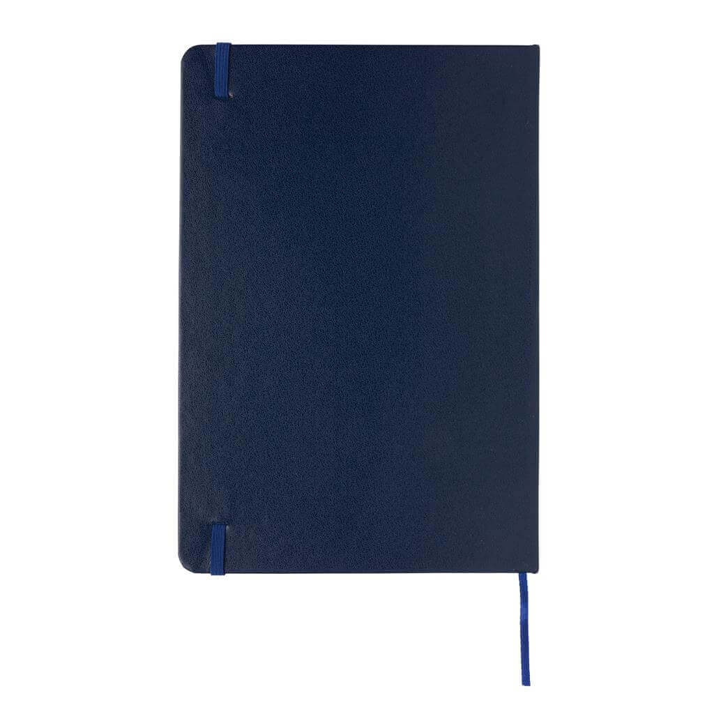 Linajkový základný poznámkový blok A5 s pevnými doskami s elastickým zatváraním a záložkou zo stuhy. 144 listov papiera s gramážou 70 g / m2. Krémové stránky.