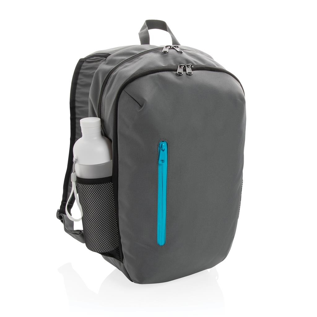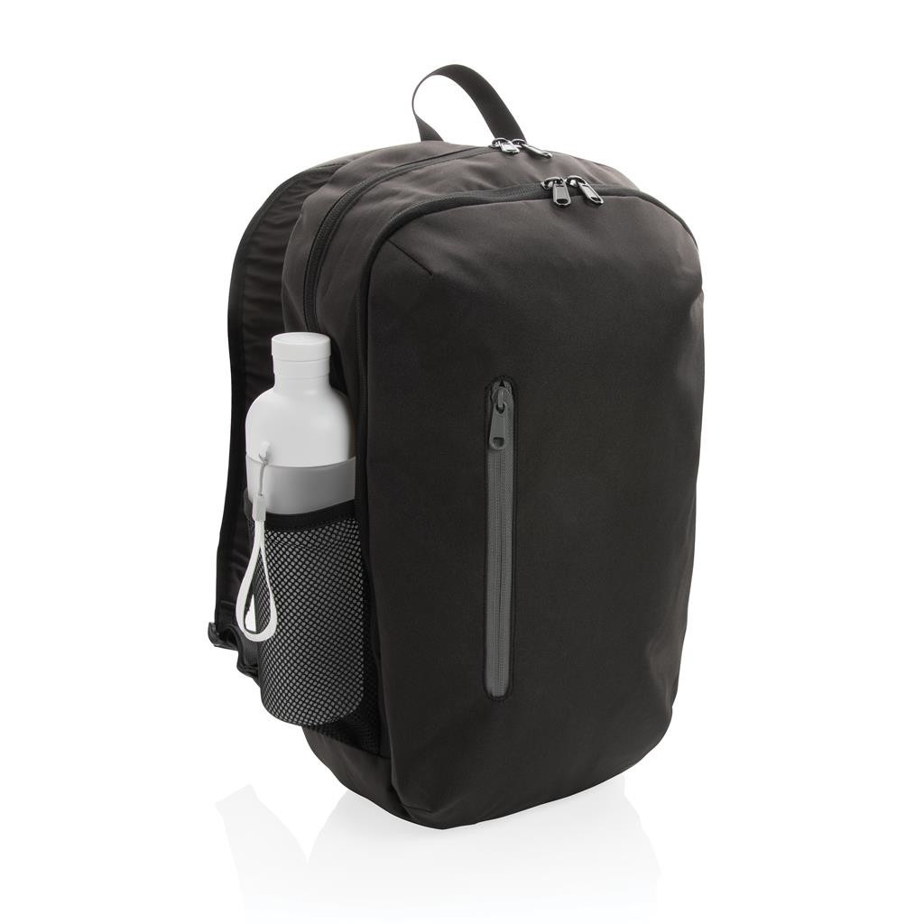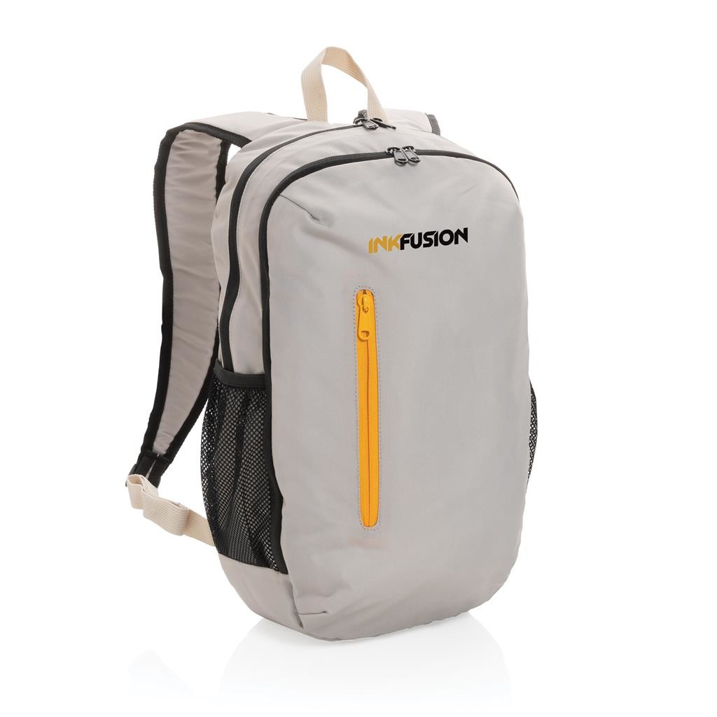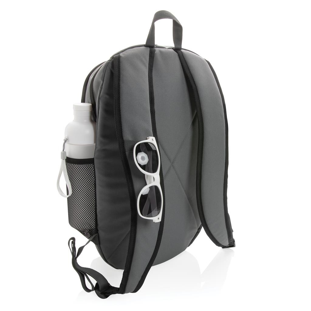 Základný batoh na každú príležitosť z kolekcie Impact. Ponúka veľa miesta v hlavnej časti na zips vrátane oddielu pre 15" notebook. Prostredný oddiel s 2 otvorenými vreckami, predný oddiel na zips pre rýchly prístup k drobnostiam. Pohodlné ramenné popruhy, 2 vonkajšie sieťové vrecká na fľašu. Ideálne pre prenos športových vecí alebo na turistiku. Vonkajšia časť vyrobená zo 100% recyklovaného polyesteru 300D, podšívka zo 100% recyklovaného polyesteru 150D. každého predaného produktu z kolekcie Impact je navyše prispených 2 % na podporu iniciatívy Water.org.