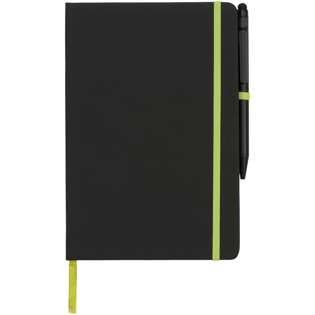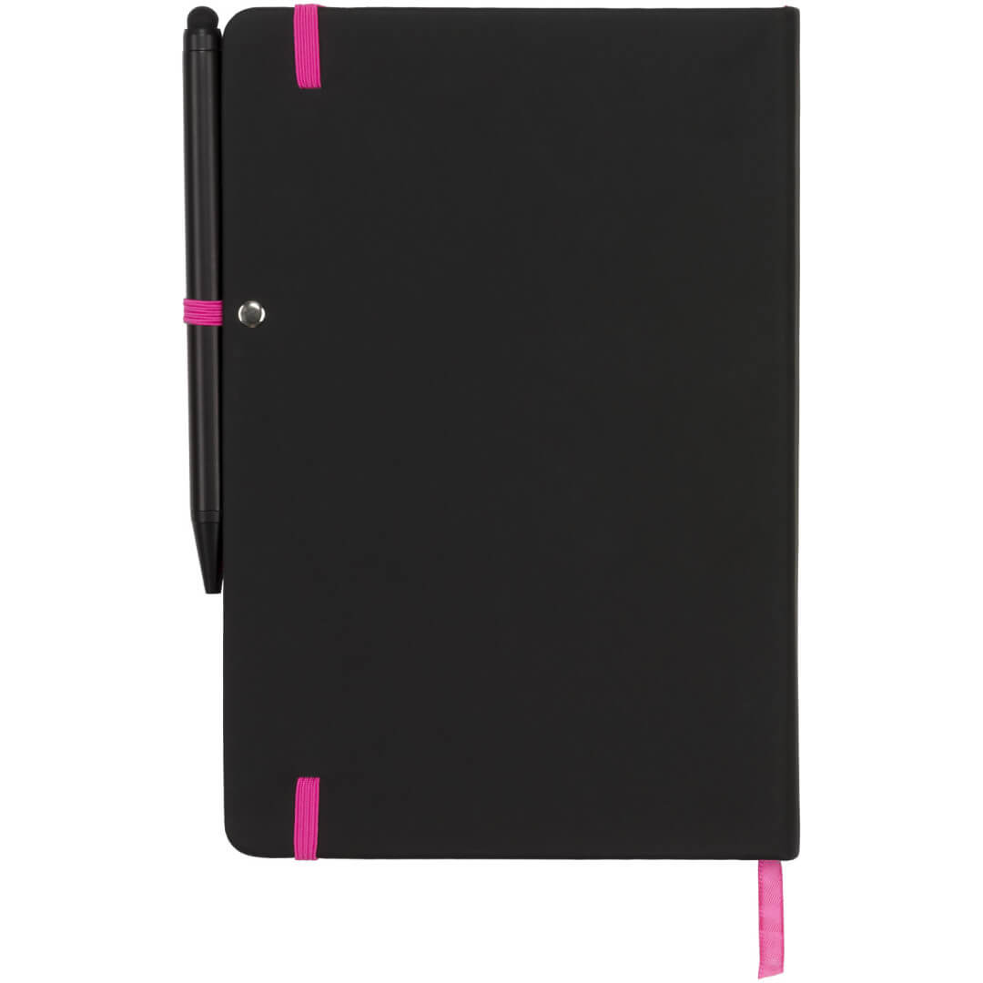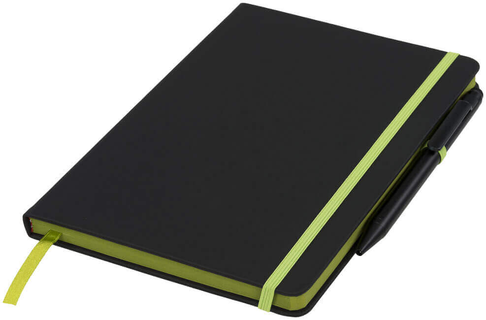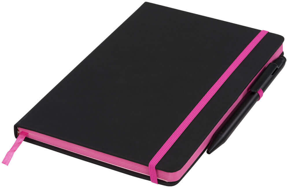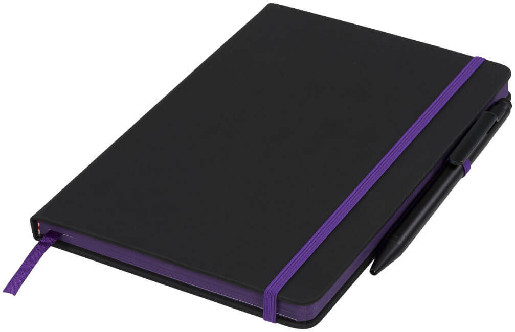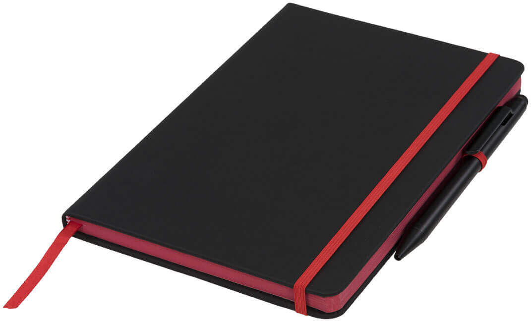Zápisník Medium noir edge. Moderný a štýlový čierny zápisník s obálkou mäkkou na dotyk. Dodávané s farebným lemovaním a zhodne sfarbenú záložkou stránok, s pútkom na pero a zaisťovacie páskou. Dodávané s jednoduchým čiernym guličkovým perom slúžiacim tiež ako stylus. Obsahuje 96 listov krémového linkovaného papiera (70g / m2). PU.