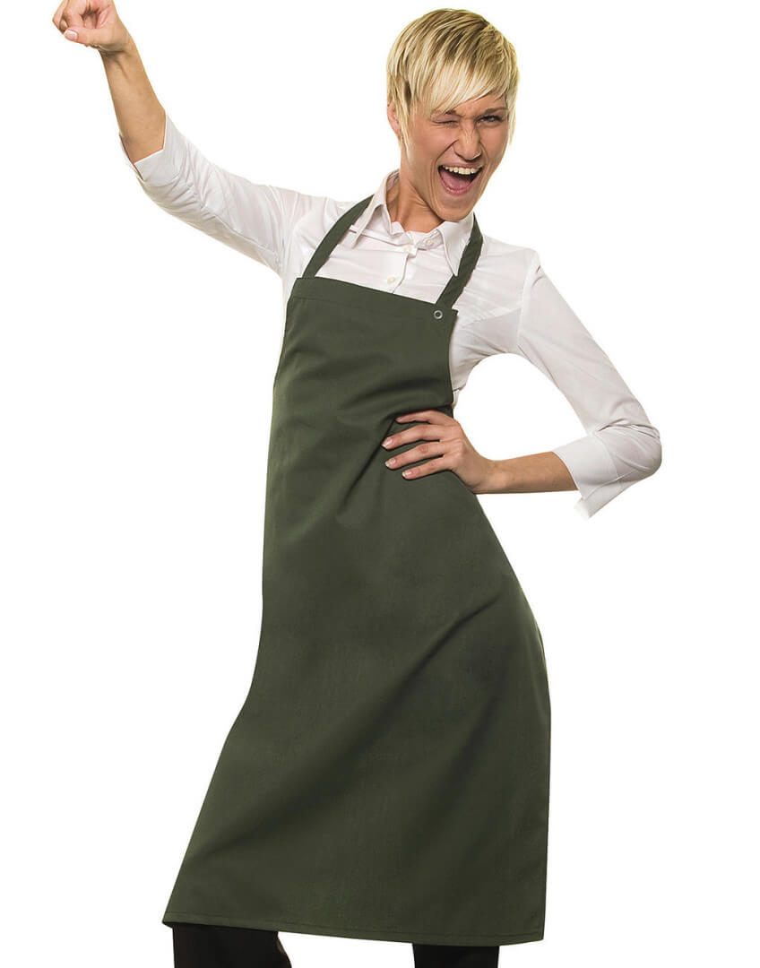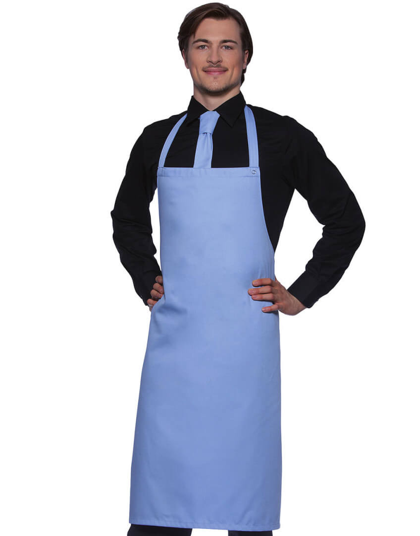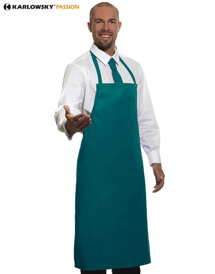 ·215 g/m² ·65% polyester, 35% bavlna, predpraná, textília vysokej kvality ·pásky z odpovedajúcej textílie so zosilnenými namáhanými bodmi ·páska okolo krku 60 cm, nastaviteľná dĺžka s cvokmi ·vhodná pre priemyselné práčovne ·prať pri teplote do 95°C ·farebná stálosť a jednoduchá údržba ·rozmery: 75 x 95 cm