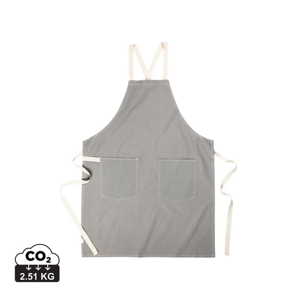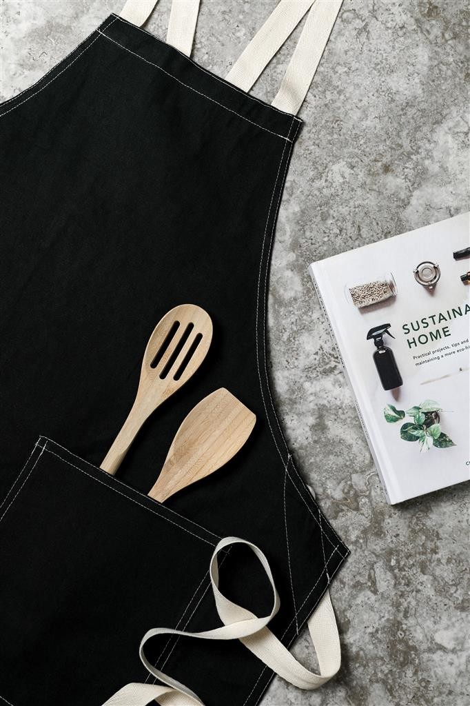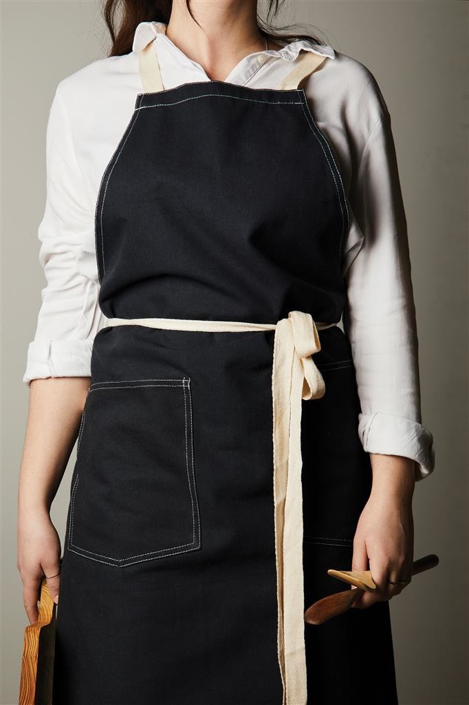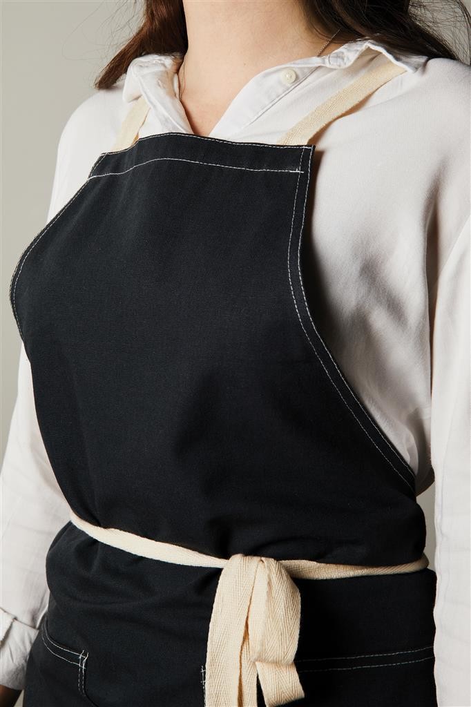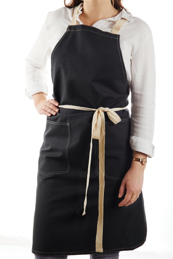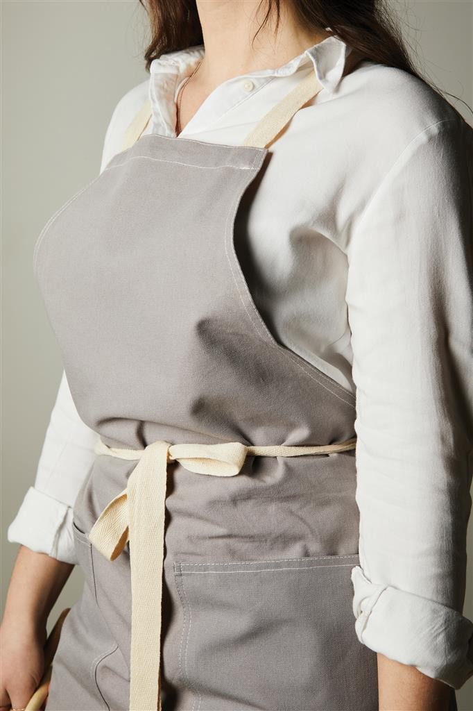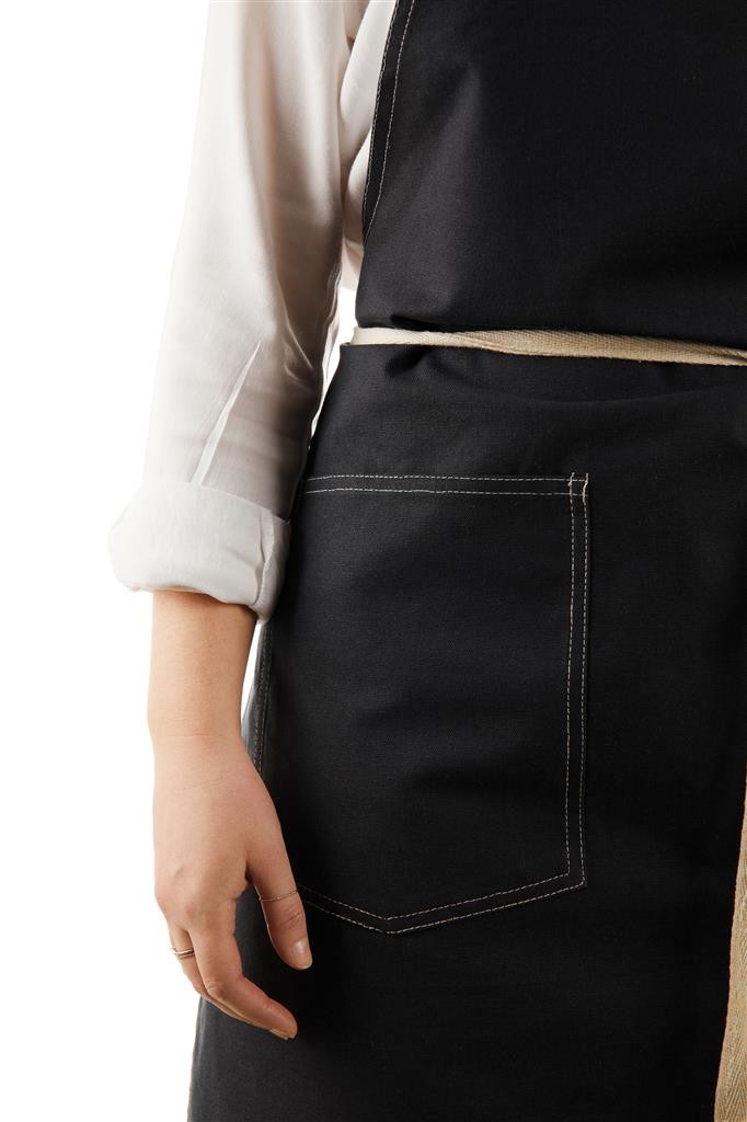 Zástera vyrobená zo 70% z certifikovanej recyklovanej bavlny z bavlneného odpadu od dodávateľov. Vlákna, ktoré sú obvykle považované za nepoužiteľné, dosiahli požadované vlastnosti vďaka správnemu výrobnému procesu. Táto zástera je mimoriadne široká, aby poskytovala maximálnu ochranu. Má dve veľké predné vrecká a pútko na zavesenie riadu alebo utierky.