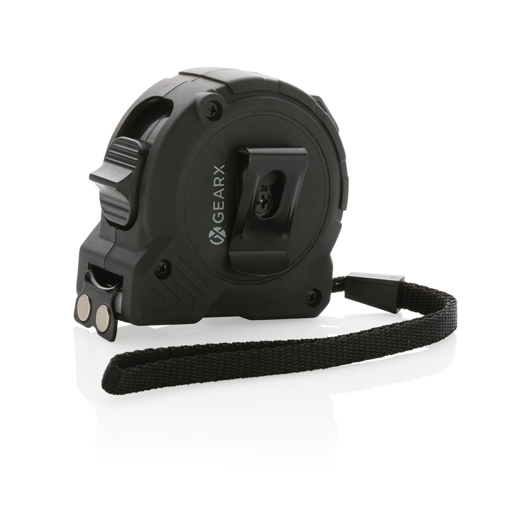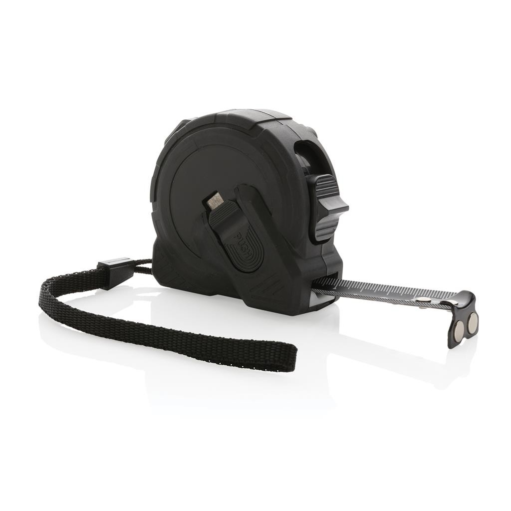 Štýlový zvinovací meter s vysoko kvalitným 5 m/19mm karbónovým pásmom. Odolné puzdro s funkciou zámku a klipom na opasok. Oproti väčšine modelov na trhu ponúkajú dve rýchlosti zvinovania - pomalé a rýchle. Dva silné magnety na háčiku na konci pásma. Potlač je vysoko trvanlivá a odolná oderom. Balené v luxusnej darčekovej krabičke.