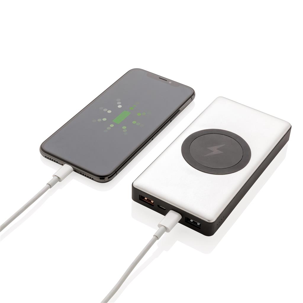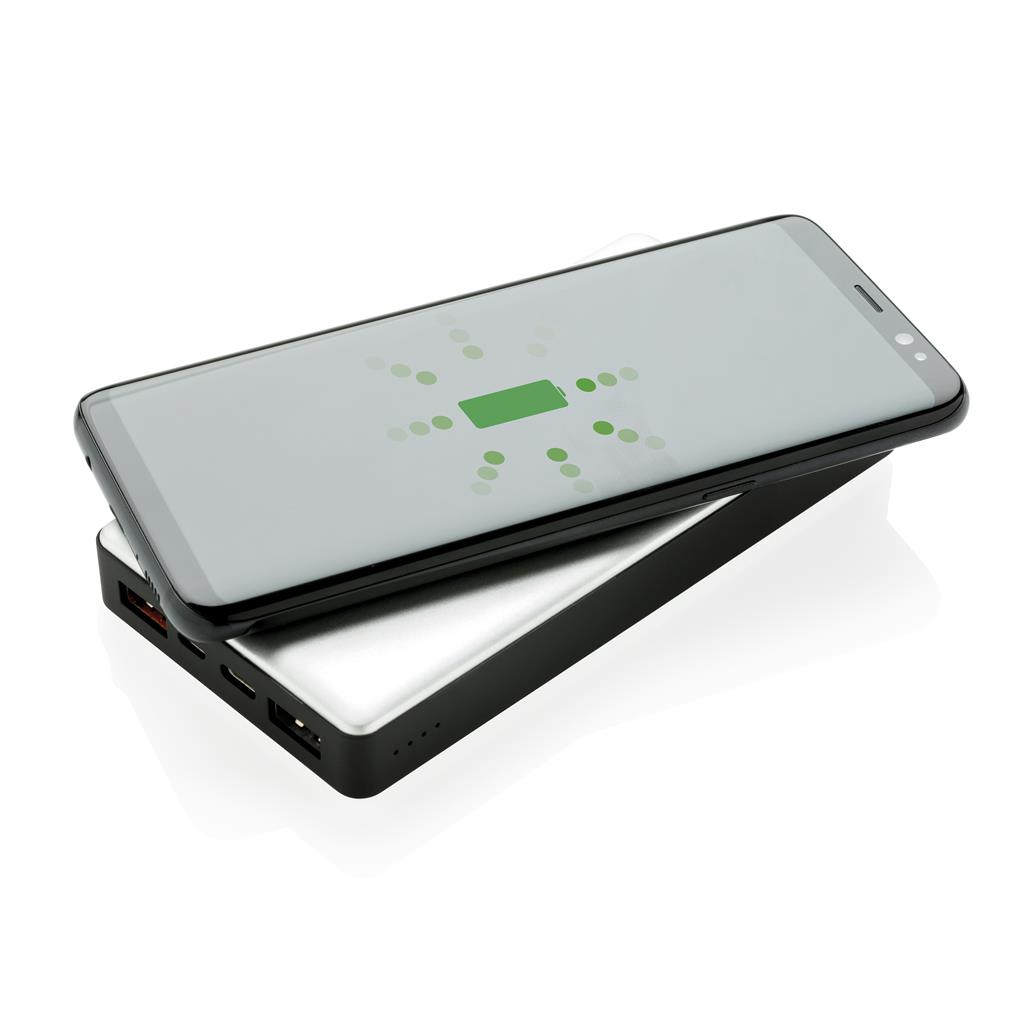 Ultimátna PowerBank kombinujúca všetky moderné nabíjacie technológie v jednom zariadení. Disponuje 10W bezdrôtovú nabíjačkou, ktorá je kompatibilná so všetkými zariadeniami podporujúce QI, ako sú najnovšie Android zariadenia a iPhone 8 a vyššie. PowerBank má 3 výstupy: 1 bežný USB port (2.1A), 1 Quick charge 3.0 port pre rýchle nabíjanie a 1 PD USB typ C pre ultra rýchle nabíjanie zariadenia podporujúce typ C, napr .: Macbook, Nintendo Switch a ďalšie mobilné zariadenia. PD port umožňuje nabitie vášho iPhone 8 za menej ako 1 hodinu. Vyrobené z odolného hliníka. Micro USB vstupný port (max 2A), typ C vstupný port (max 3A). Výstup: USB port & typ C: 5V / 3A, 9V / 2A, 12V / 1,5A. Bezdrôtový výstup: 5V / 1A, 9V / 1.1A. 1 batéria typu Li-poly, súčasť balenia.
