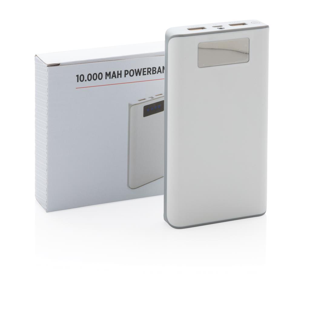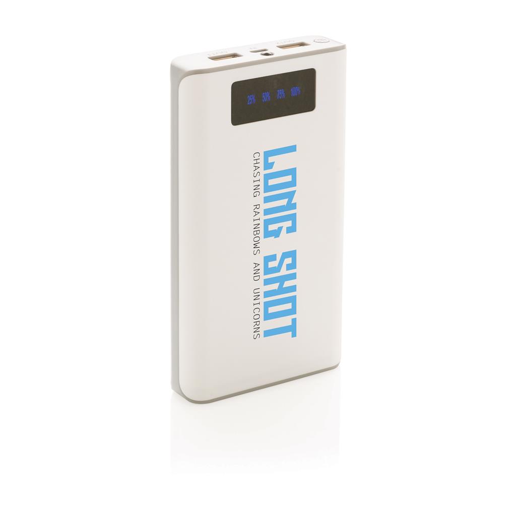 PowerBanka s 10 000 mAh lítiovou batériou a indikátorom batérie pre zobrazenie zostávajúcej energie (25% - 50% - 75% - 100%). Nabíjajte svoje zariadenia kedykoľvek a kdekoľvek. S dvoma USB výstupy pre nabíjanie dvoch zariadení súčasne (max 2,1 A). Výstup: 5 V / 2,6 A, vstup: 5 V / 2 A. Vrátane micro USB kábla. 1 batériou typu Li-ion Súčasťou balenia