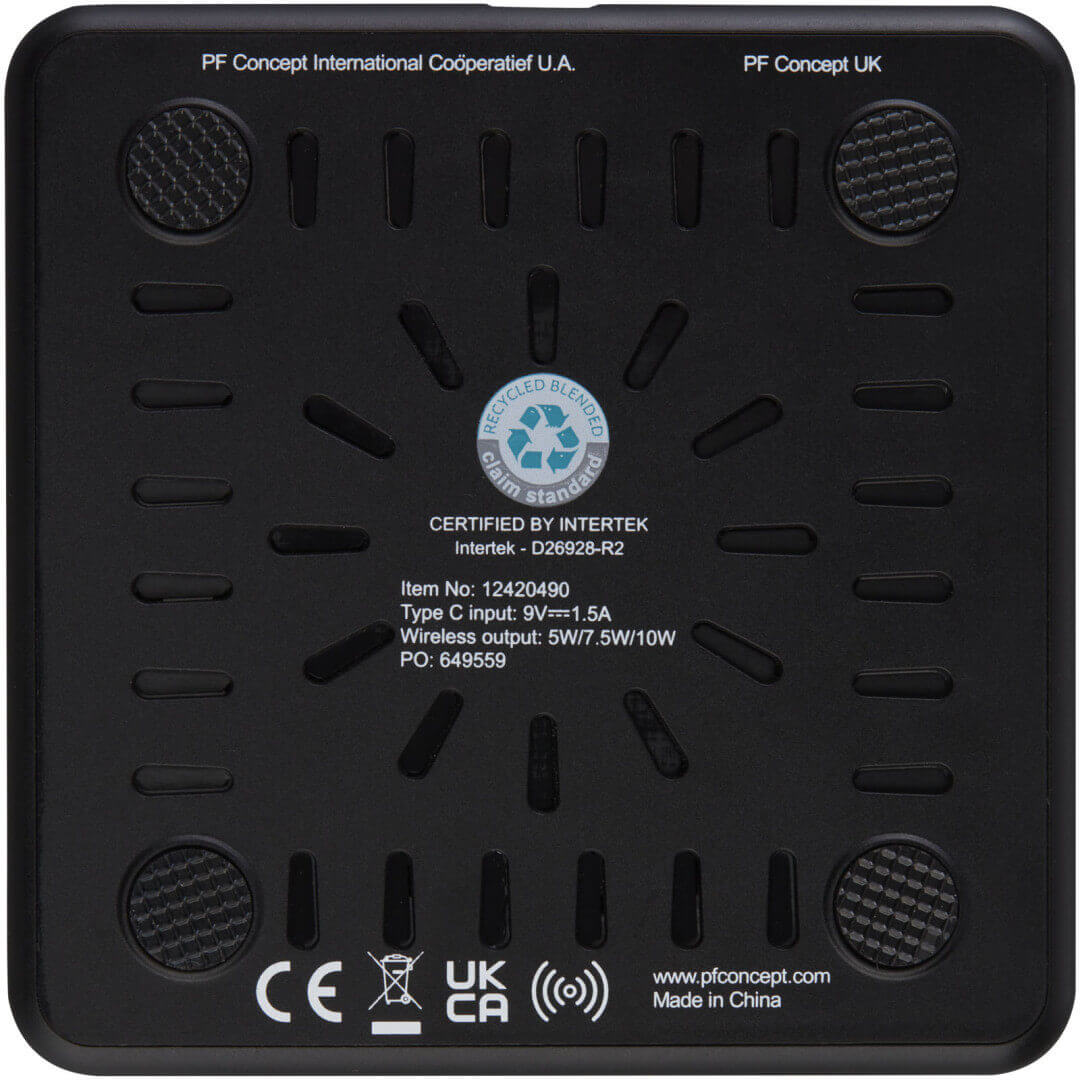 Bezdrôtová nabíjacia podložka z recyklovaného ABS plastu s certifikáciou RCS. RCS (Recycled Claim Standard) je štandard pre overovanie recyklovaného obsahu produktu naprieč celým dodávateľským reťazcom. Nabíjať začnete tak, že nabíjaciu podložku pripojíte k počítaču alebo notebooku a zariadenie na ňu položíte. Bezdrôtový výkon pre rýchle nabíjanie je 10 W (max.). Kompatibilný so všetkými zariadeniami Qi (iPhone 8 alebo vyšší a zariadenia Android, ktoré podporujú bezdrôtové nabíjanie). Dodáva sa v darčekovej krabičke vrátane návodu (krabička aj návod sú vyrobené z udržateľných materiálov).