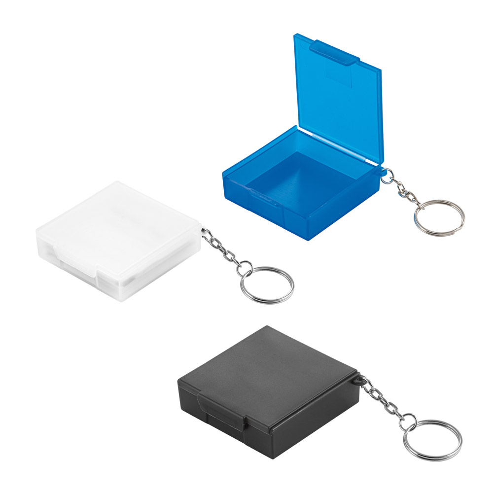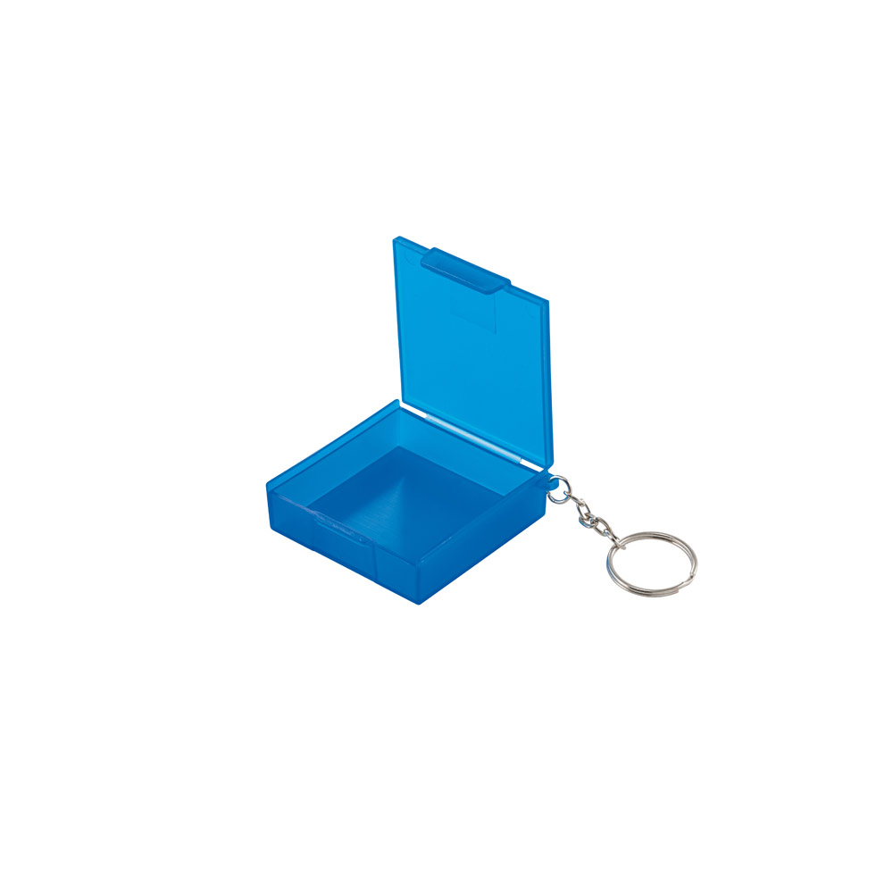 Praktická kľúčenka s malou plastovou škatuľkou, ideálna na drobnosti ako tabletky, žuvačky či mince. Vďaka kompaktnému rozmeru a kovovému krúžku ju ľahko pripnete na kľúče, tašku alebo batoh. Dostupná v troch farbách.