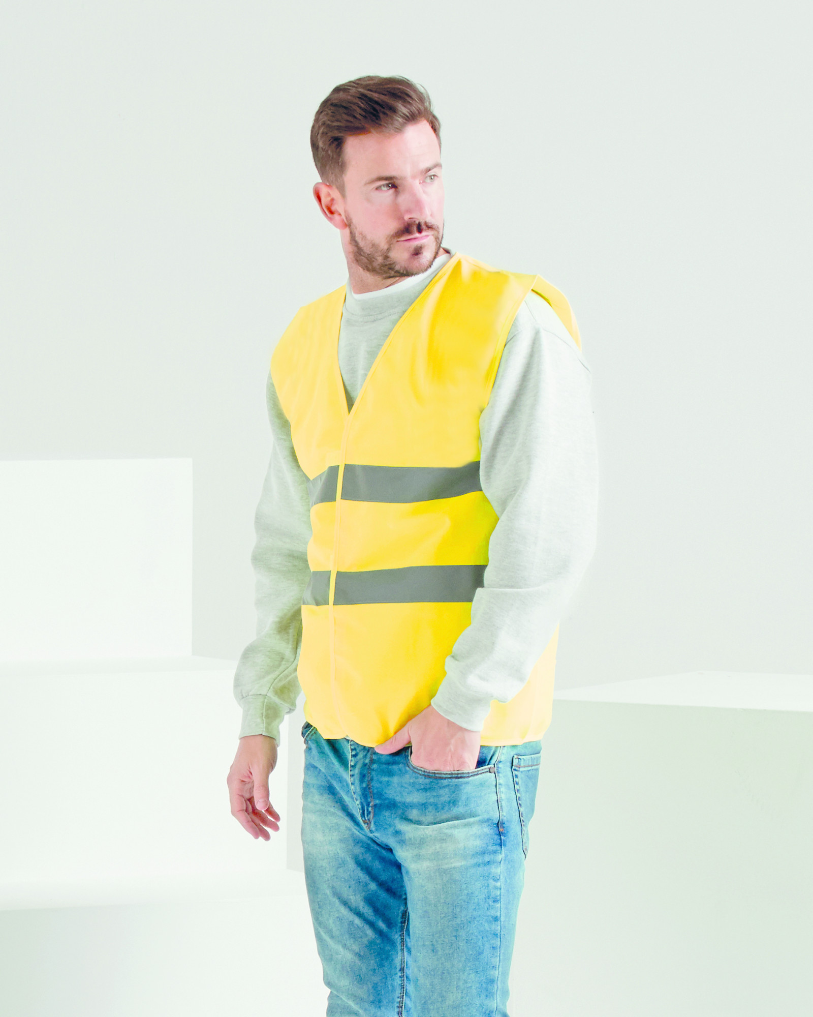120 g / m² · 100% polyester · Suchý zips · reflexná páska šírka 5 cm okolo tela · Vhodné pre sieťotlač a prenosovú tlač · Veľkosti S-XL: EN ISO 20471: 2013 trieda 1 · Veľkosti 2XL-5XL: EN ISO 20471: 2013, trieda 2.