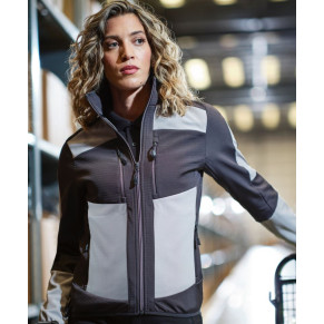 Materiál: 260g/m², 96% polyester, obsahuje minimálne 50% recyklovaného polyesteru (rPet), 4% elastan, tkaný softshell. Hrejivé vnútro, vetruodolný a vodoodpudivý materiál, lemované, elastické manžety na rukávoch, leme a golieri, 2 bočné vrecká so zipsom, 2 náprsné vrecká na zips, reflexný detail.