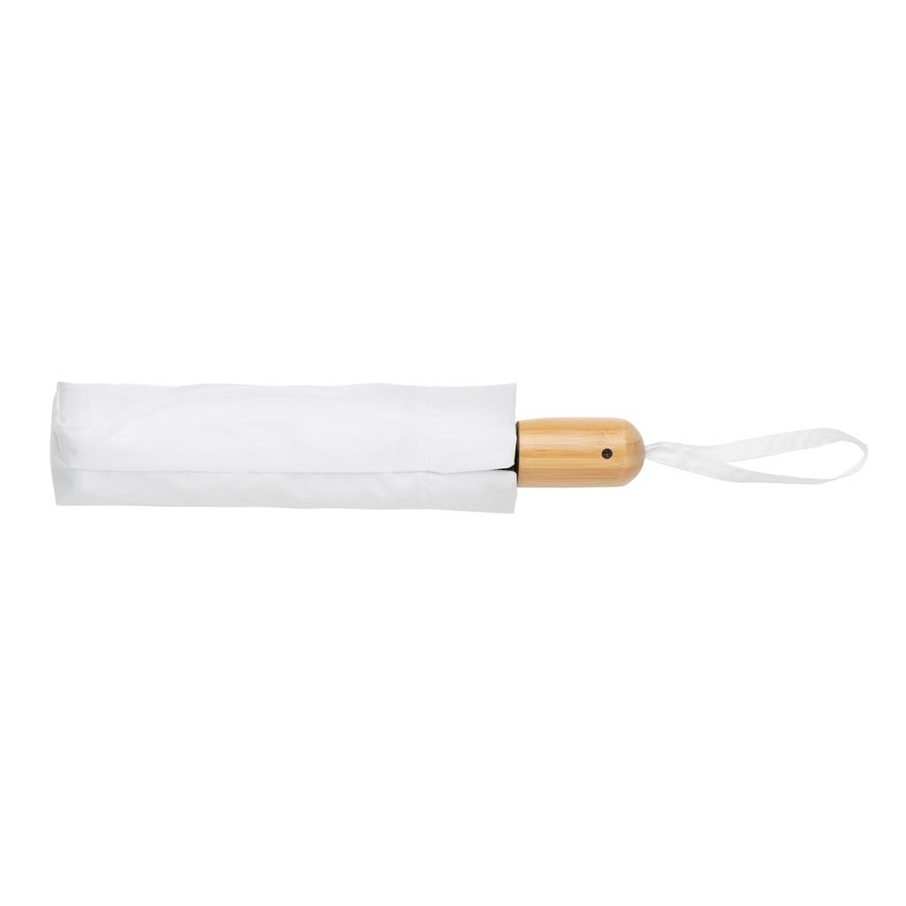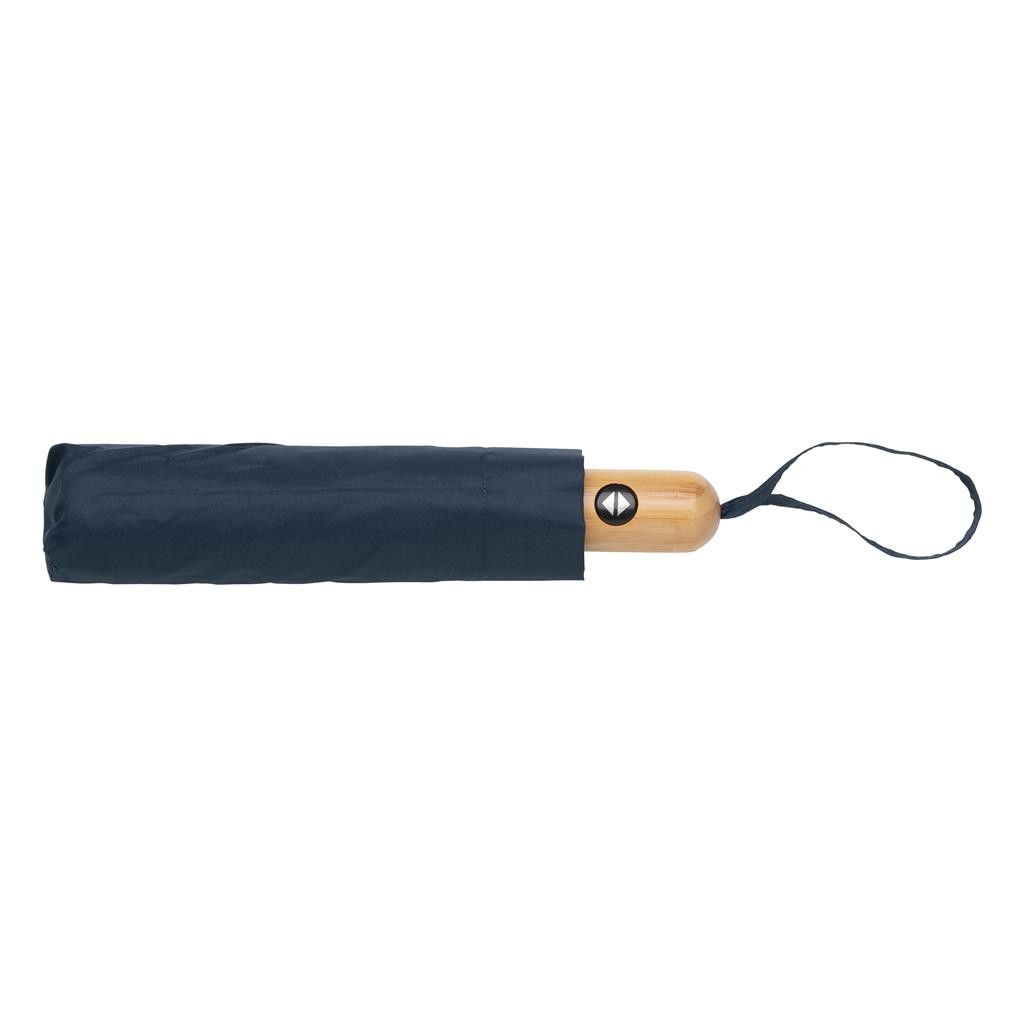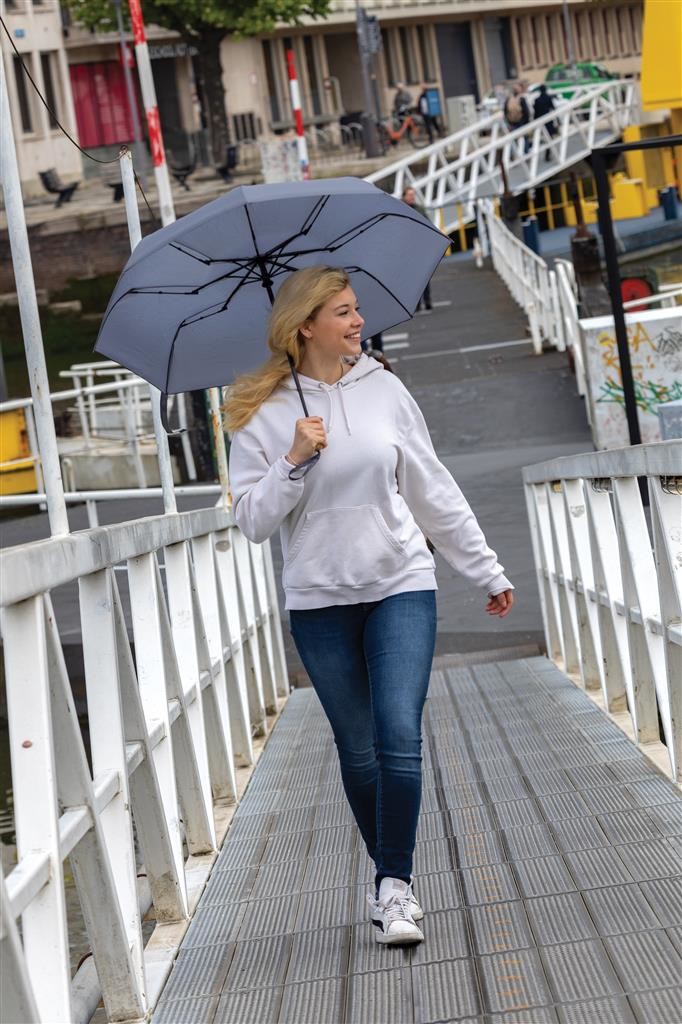 Skutočne transparentná ekológia. Kolekcia Impact obsahuje vystopovateľnú zložku AWARE™, ktorá využíva moderné možnosti skenovania a technológie blockchain, vďaka čomu je možné s istotou garantovať recyklovaný pôvod použitého materiálu a reálnu úsporu vody. Z výťažku každého predaného produktu z kolekcie Impact je navyše prispených 2 % na podporu iniciatívy Water.org. Dáždnik je vyrobený zo 190T rPET pongee materiálu. Na výrobu bolo využitých 7,5 500ml PET fliaš a bolo usporených 4,5 litrov vody. Kompaktné 21" prenosné prevedenie, automatické otváranie aj zatváranie, kovová konštrukcia, rebrá zo sklených vlákien, madlo z bambusu. Odolné vetru. Kalkulácia úspor vychádza z overených LCA dát zverejnenými globálnou neziskovou organizáciou Textile Exchange (Material Snapshots 2016).