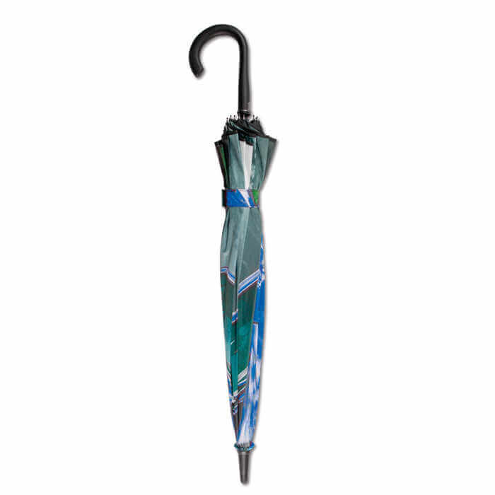 Dáždnik One Panel, plnofarebne potlačiteľný s jedným veľkým panelom. Na ten je možné vytlačiť obrázok alebo fotografiu po celej ploche, bez toho aby bol prerušený rebrami dáždnika. Kovové hroty, automatické otváranie, pogumovaná rukoväť, rebrá zo sklených vlákien. Priemer dáždnika 102 cm.