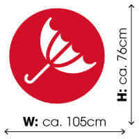 Dvojvrstvový, obojstranný dáždnik. 23 palcov (priemer 105 cm), so sklolaminátovým driekom a rebrami. Kovové hroty, manuálne otváranie a pogumovaná rukoväť s háčikom. Vrátane farebnej stálosti náteru. Dáždnik je možné plnofarebne potlačiť z vnútornej strany a vybrať farbu vonkajšej textílie. Extra odolná konštrukcia proti nárazom vetra. Možnosť vybrať z farieb dáždnika podľa vzorkovníka v galérii. Rozmer ø105x76 cm. Za príplatok si môžete dať vymeniť kovové hroty za farebné plastové.