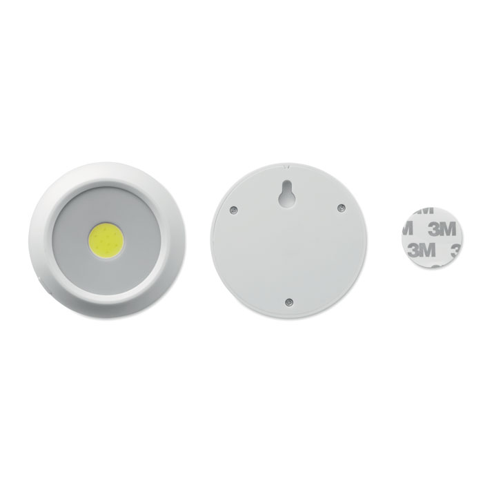 COB svetlo, ktoré sa dá otáčať o 360 stupňov z ABS. Svetelná guľa sa dá odpojiť od podstavca a je pridržiavaná magnetom. 3 AAA batériu nie sú priložené.
