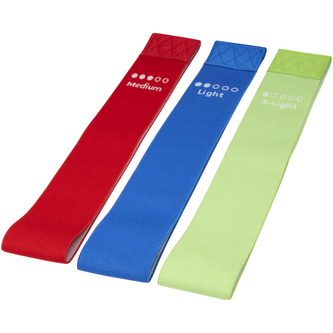 Dokonalá všestranná sada odporových pásikov pre mužov a ženy umožňujúce skvelé domáce cvičenie. Sada obsahuje 3 ľahké odporové pásy (60 × 5 cm) so stredne silným odporom, ideálny pre tréning zadku, nôh, stehien a brušných svalov. Pásky sú vyrobené z mäkkého polyesteru a majú na vnútornej strane pohodlnú, nekĺzavú latexovú vrstvu, ktorá zaisťuje pevný úchop pri cvičení. Sada je dodávaná s úložným puzdrom (20 × 10 cm) z recyklovaného PET plastu, ktorý ponúka skvelú plochu pre tlač loga.