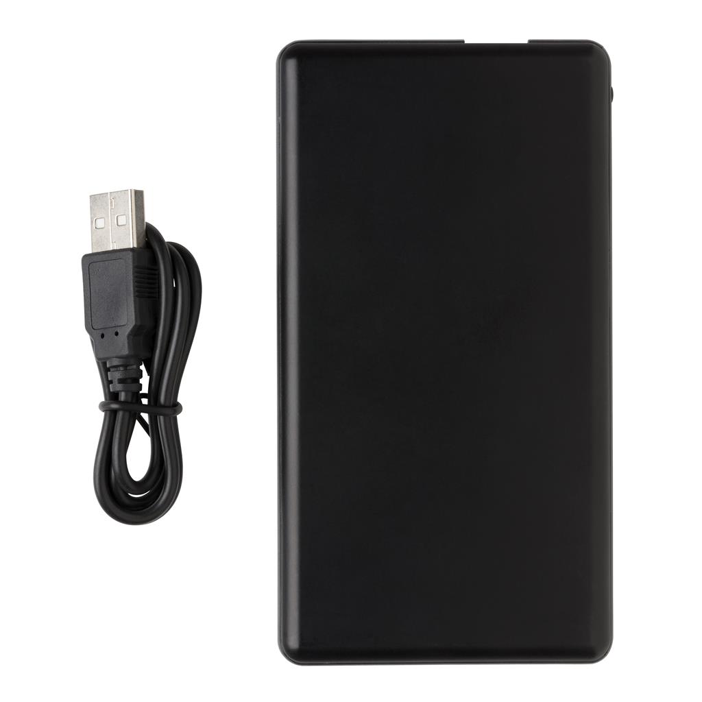 Plochá a odolná powerbanka s lithium-polymérovou 4 000 mAh batériou. Na prednej strane je možné gravírovať logo, ktoré sa pri použití powerbanky rozsvieti a efektne tak zvýraznia váš firemný odkaz. Výstup: 5 V/2,1 A. Vstup: 5 V/1,5 A. 1 batéria typu Li-poly súčasťou balenia.