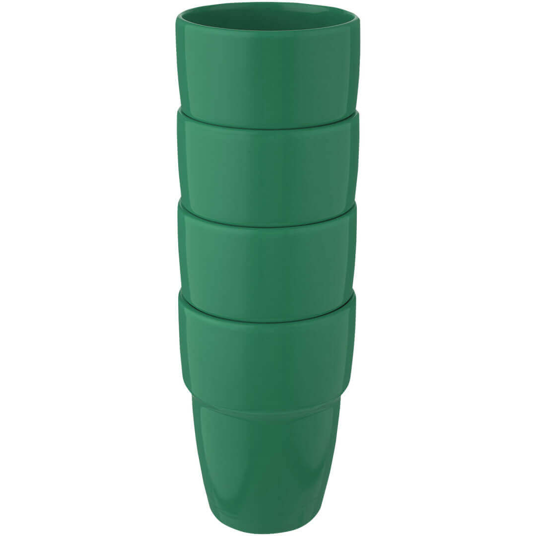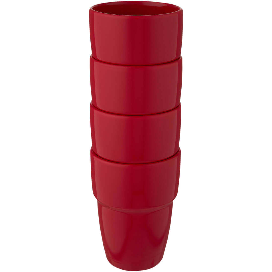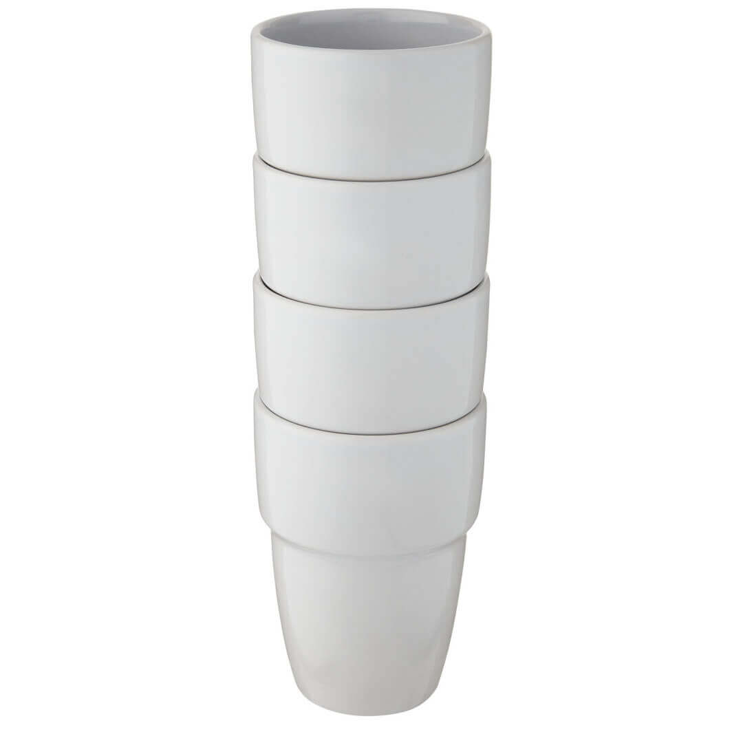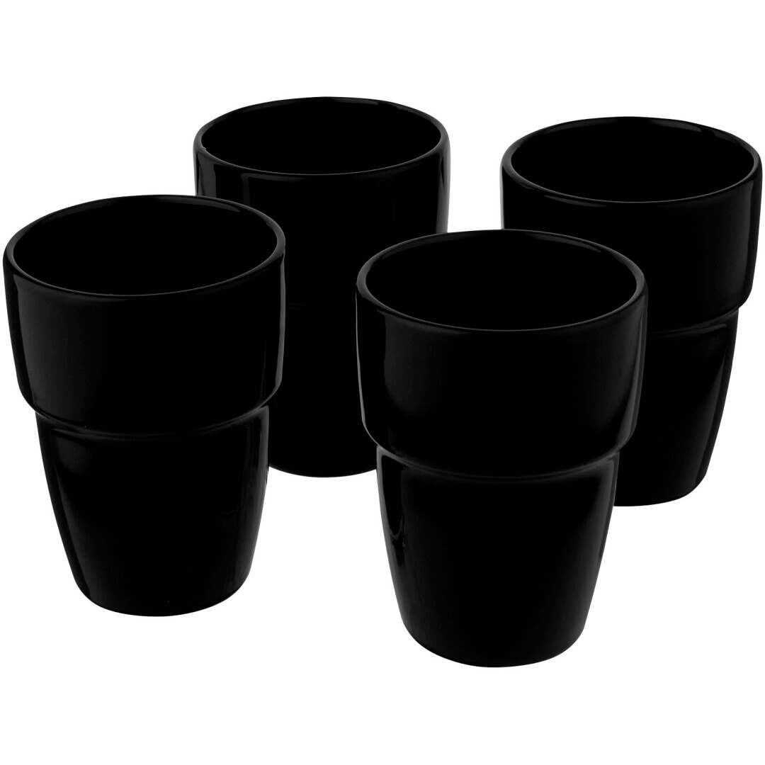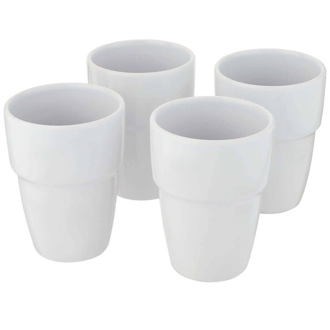 Darčeková sada štyroch keramických hrnčekov, ktoré sú stohovateľné, takže zaberajú čo najmenej miesta a sú prehľadne usporiadané v kancelárii aj doma. Objem je 280 ml. Možno umývať v umývačke riadu (platí pre všetky metódy zdobenia). Dodáva sa v darčekovej krabičke z recyklovanej lepenky.
