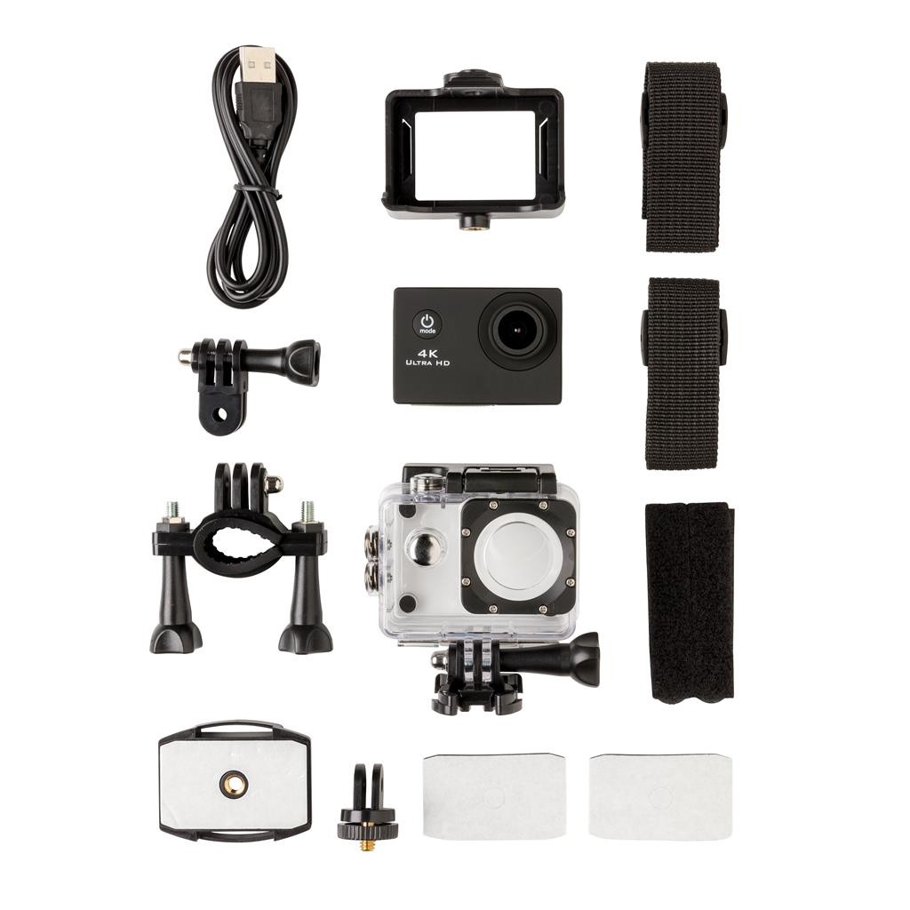 Super moderná HD športová kamera s 4K rozlíšením. 1,5 "TFT LCD displej na zadnej strane pre okamžité prezeranie fotiek / videí vo vysokej kvalite. Pamäť pomocou micro SD karty (nie je súčasťou balenia) rozšíriteľná až na 32 GB. Batéria s kapacitou 650 mAh umožňuje natáčanie po dobu až 70 minút. 11 dielne príslušenstvo: vodeodolné puzdro (až do 30m), držiak na helmu, držiak na bicykel, klip, konektor, kĺb, 2 popruhy, 2 lepiace pásky, nabíjací kábel micro USB. 1 batériou typu Li-poly Súčasti balením.