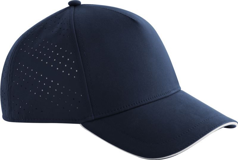 Ohnutý šilt, sandwich v kontrastnej farbe, podšívka v kontrastnej farbe, mäkká potná páska, vystužené predné panely, laserované vetracie otvory, patentka, regulujúca vlhkosť, štítok Tear Away, iba čistiť hubkou, nesmie sa prať.