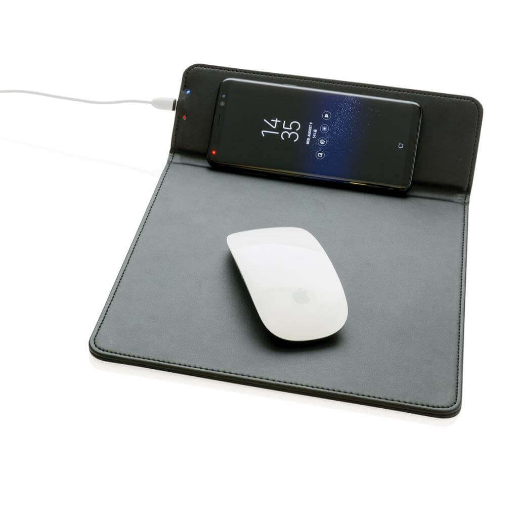PU podložka pod myš s integrovanou bezdrôtovou nabíjjacou podložkou. Časť pre bezdrôtové nabíjanie možno použiť ako stojan pre telefón. Vrátane 40cm micro USB kábla k pripojeniu k USB počítača. Bezdrôtové nabíjanie je kompatibilné s najnovšou Android generáciou, ďalej s iPhone 8, 8S a iPhone X. Vstup: 5V/1A. Bezdrôtový výstup 5V/1A 5W.