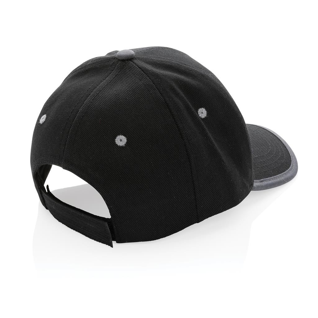 Skutočne transparentná ekológia. Kolekcia Impact obsahuje vystopovateľnú zložku AWARE™, ktorá využíva moderné možnosti skenovania a technológie blockchain, vďaka čomu je možné s istotou garantovať recyklovaný pôvod použitého materiálu a reálnu úsporu vody. Výrobou tohto produktu bolo usporených 250 litrov vody. Z výťažku každého predaného produktu z kolekcie Impact je navyše prispených 2 % na podporu iniciatívy Water.org. Kontrastná šiltovka s tmavo šedým prešitím a zapínaním na suchý zips. Vyrobené z brúsenej recyklovanej bavlny AWARE™ s gramážou 280 g/m2. Kalkulácia úspory vody vychádza z overených LCA dát zverejnenými globálnou neziskovou organizáciou Textile Exchange (Material Snapshots 2016).