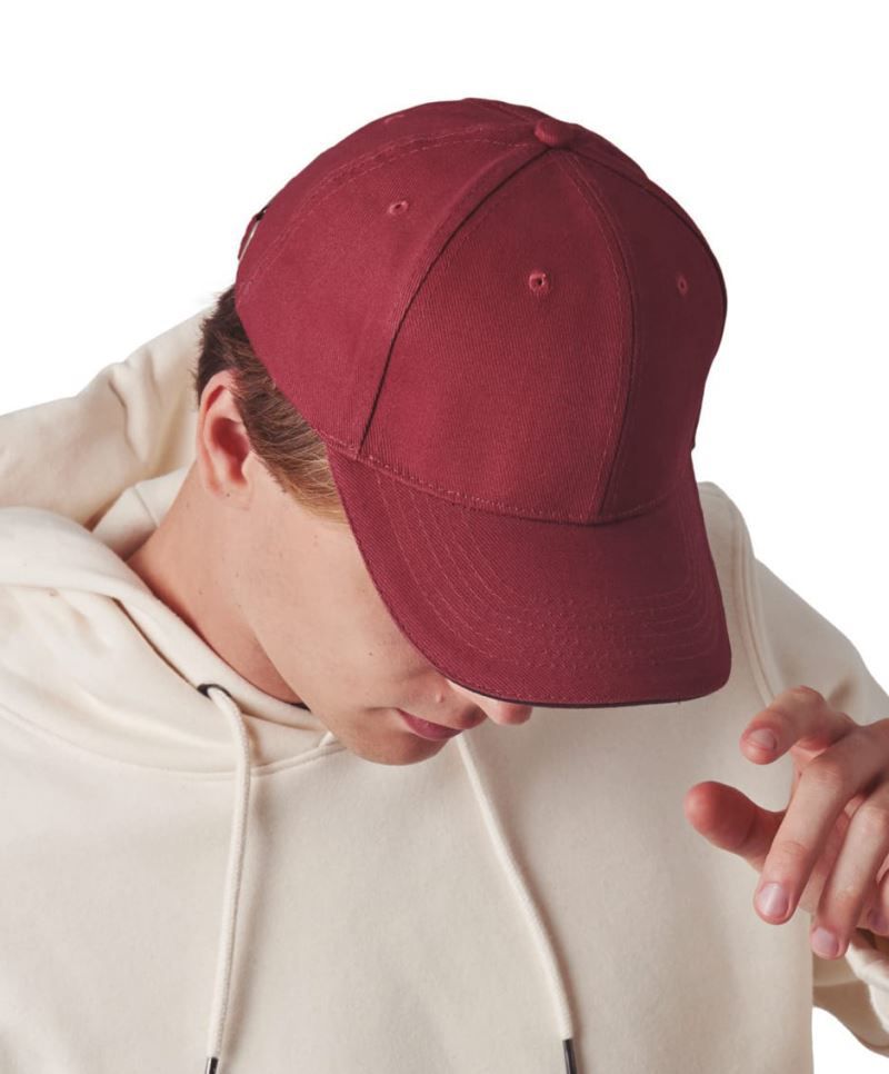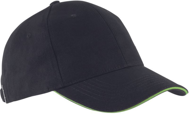6 ozdobných švov na šilte, sandwich v kontrastnej farbe, obšité vetracie otvory, látkový pásik s kovovým zapínaním, odolná, pružná tkanina, certifikovaná vegánska výroba bez živočíšnych prísad, prateľné na 30 °, nemožno sušiť v sušičke, nemožno chemicky.
