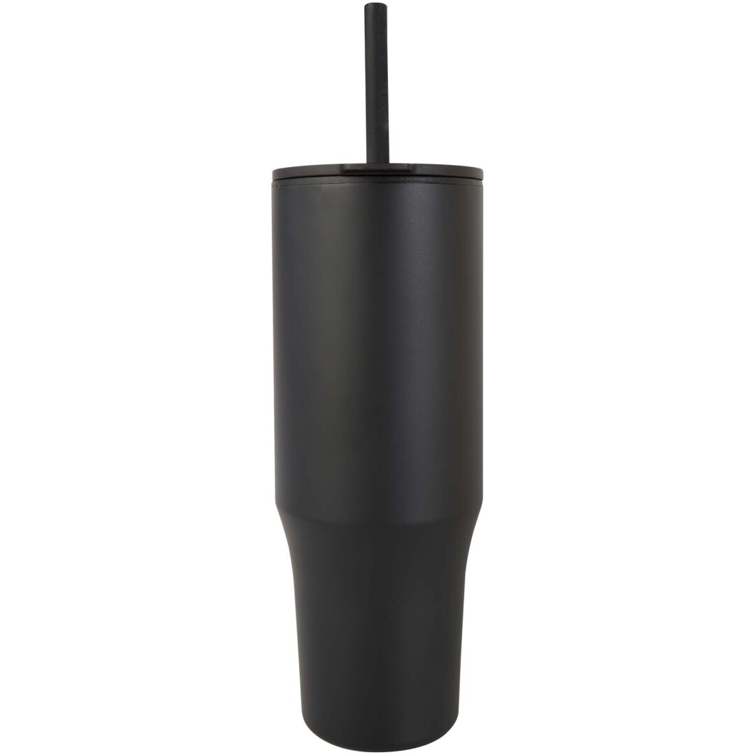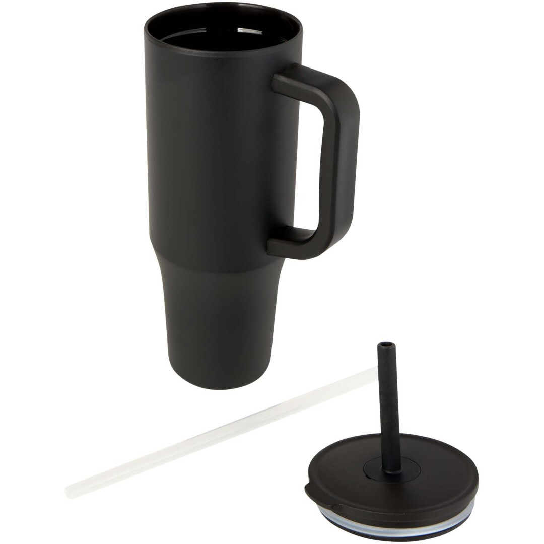 Hrnček má odolnú vonkajšiu stenu vyrobenú z recyklovanej nerezovej ocele s certifikáciou RCS a vnútornú stenu z plastu. Súčasťou je integrovaná silikónová slamka pre potravinárske účely a viečko odolné proti striekajúcej vode pre ľahké pitie. Hrnček je vhodný aj pre horúce nápoje, ale neodporúča sa ich piť slamkou. Pokiaľ chcete aby nápoj vychladol, odstráňte pred konzumáciou viečko. Objemová kapacita: 900 ml. Neodporúčame umývať v umývačke. 90% Recycled stainless steel, 10% PP plast.