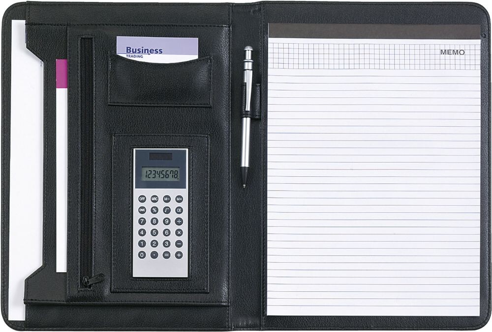 A4 PU konferenčná mapa s poznámkovým blokom a kalkulačkou. Vrátane batérií.