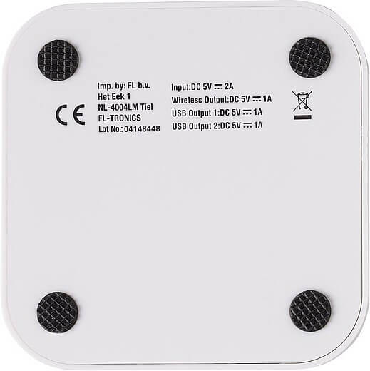 ABS nabíjačka s bezdrôtovou technológiou a USB a micro USB portom. Výstup 5V1A bezdrôtovo a 5V2A pre USB. Vrátane kábla.