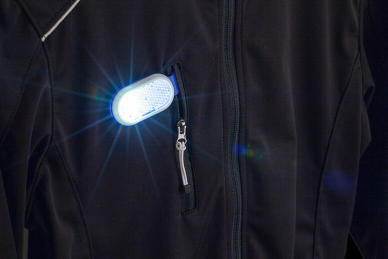 Reflektorové svetlo ABS so sponou na zadnej strane. Svetlo má dve nastavenia: konštantné biele svetlo a blikajúce červené svetlo. Vrátane batérií.