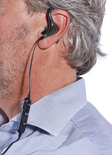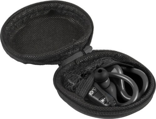 bezdrôtové slúchadlá do uší na cvičenie, s diaľkovým ovládaním a mikrofónom na telefonovanie bez použitia rúk. Dĺžka kábla: cca. 55 cm. Balené vo vrecku so zapínaním na zips. Vrátane nabíjacieho kábla micro USB. Výdrž batérie: 3 hodiny.