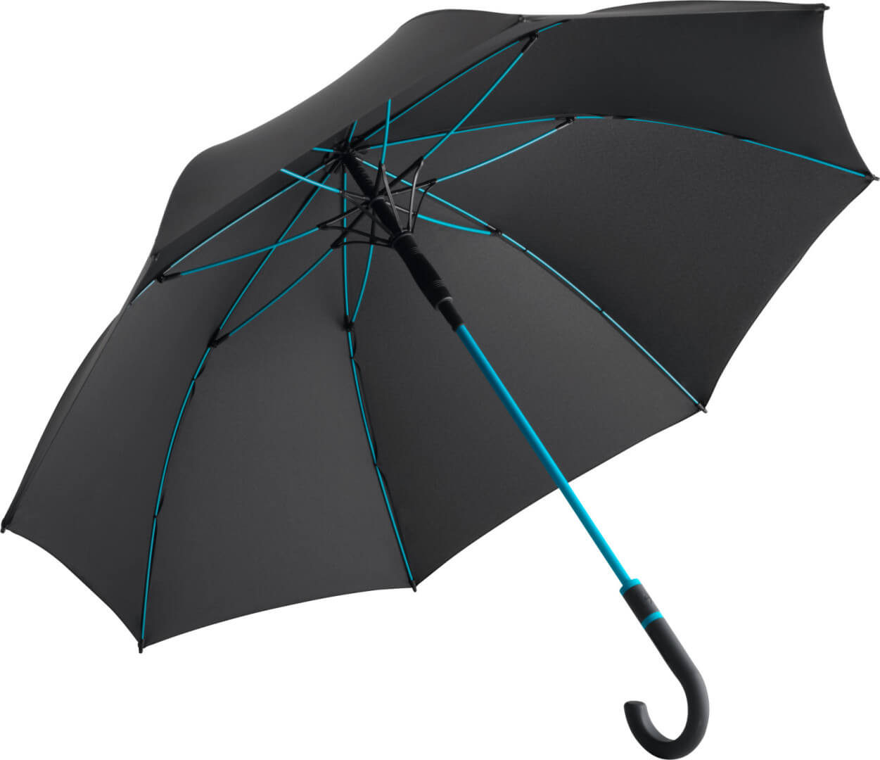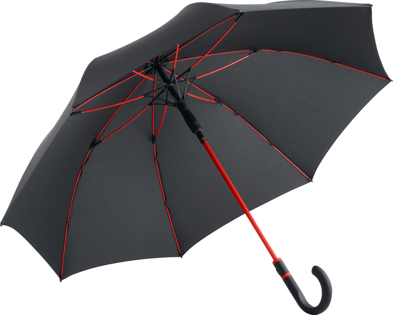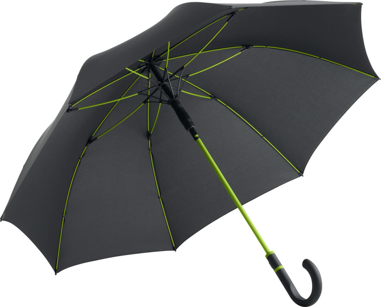 Farebne potiahnutá tyč, pekne tvarovaná Soft-Touch guľatá háková rukoväť s farebnými krúžkami a integrovaným tlačidlom na otváranie, flexibilné farebné rebrá zo sklenených vlákien, automatická funkcia pre rýchle otvorenie, vetruodolný systém pre maximálnu flexibilitu rámu, priemer: 112cm, uzavretý má dĺžku cca 89cm.