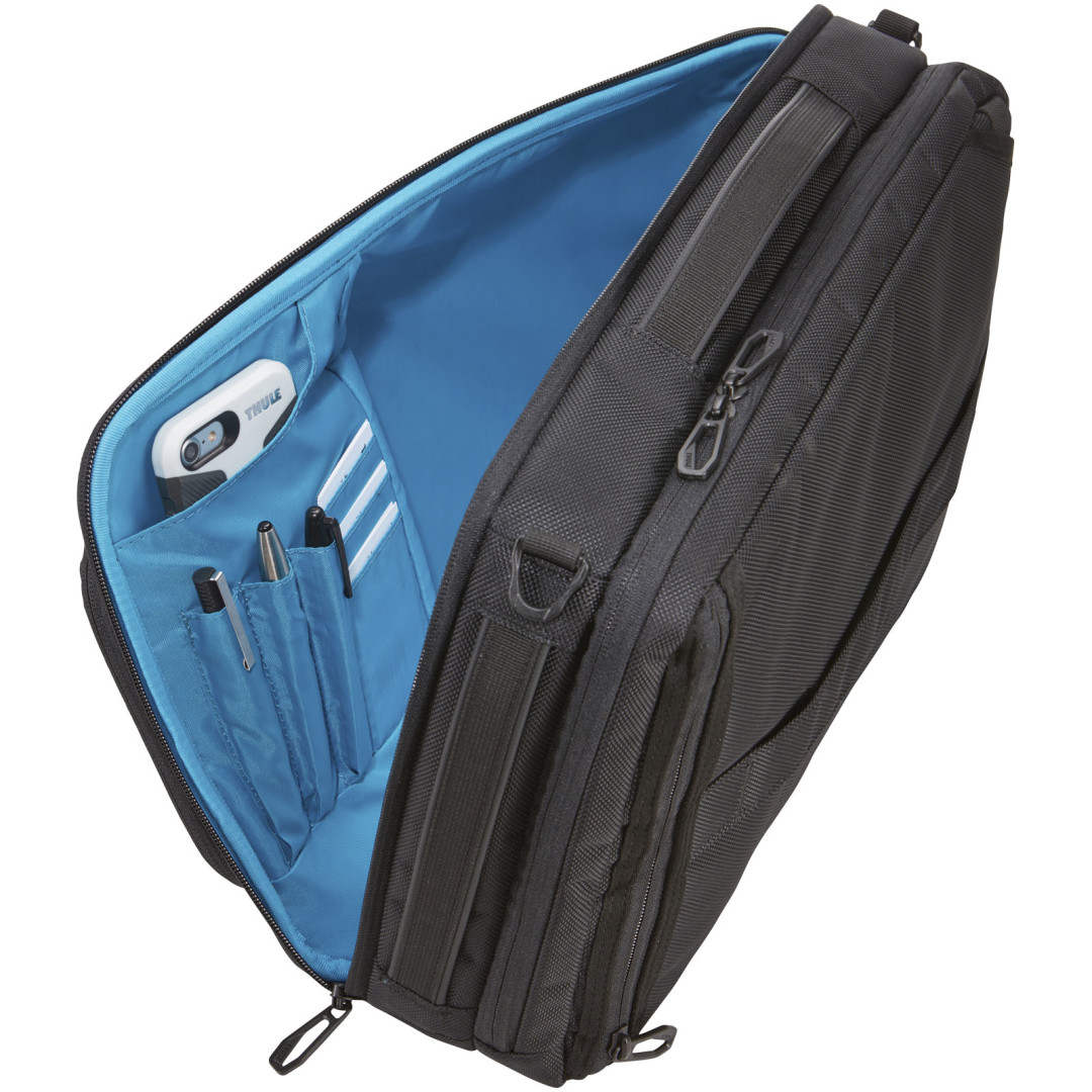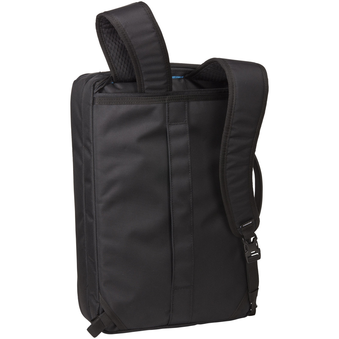 Hybridná taška, ktorú možno použiť ako batoh alebo tašku na notebook. Hlavná priehradka je uzatvárateľná na zips a obsahuje polstrované puzdro na notebook s veľkosťou 15,6 "a vyhradené vrecko na tablet s veľkosťou 10". Dodáva sa s priehradkou SafeZone s dodatočnou ochranou pre telefón, slnečné okuliare alebo iné cennosti. Obsahuje prievlak pre vozík, polstrovaný zadný panel a odnímateľný polstrovaný ramenný popruh.