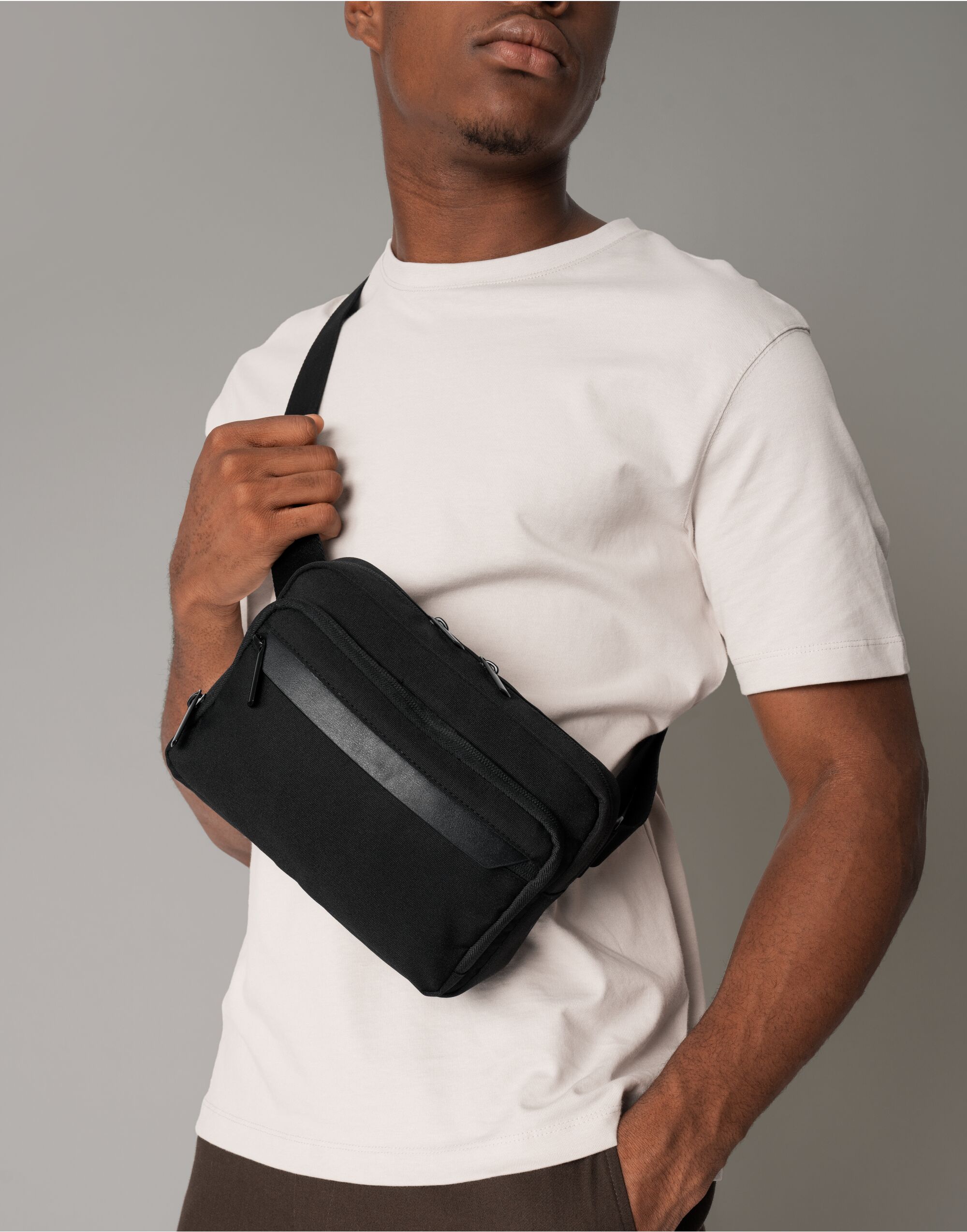 - 252 g/m² - 100 % polyester 600D (recyklovaný) - minimalistický štýl - obojsmerný zips pre ľahký prístup - vnútorné sieťované vrecko na zips - vysokokvalitná vnútorná podšívka - vonkajšie predné vrecko na zips s klopou proti dažďu a štrbinové vrecká vo vnútri - nastaviteľný ramenný popruh - Štítok TearAway pre jednoduché preznačenie