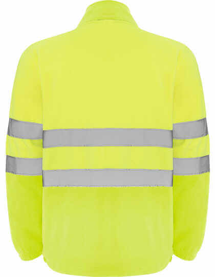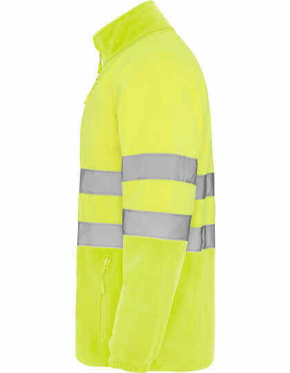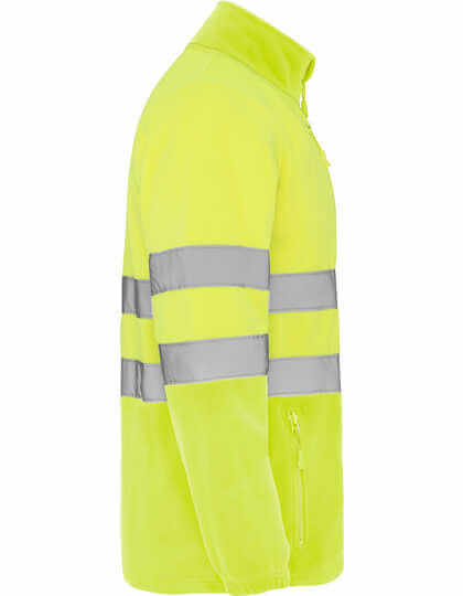 100% polyester, mikroflís, 300g/m² | Po celej dĺžke zips s ochranou brady | Dva reflexné prúžky na hrudi a rukávoch | Dve predné vrecká so zapínaním na zips v rovnakom štýle a náprsným vreckom | Elastické sťahovacie šnúrky so zarážkou v leme | Odolné voči vetru | Certifikované podľa noriem CE: EN ISO 13688:2013 a EN ISO 20471:2013/A1:2016, trieda II | Výrobca garantuje reflexnú vlastnosť podľa normy EN pre 25 pracích cyklov do 30°C