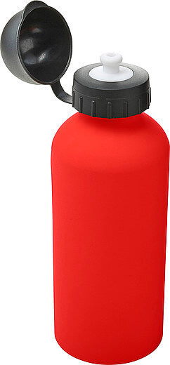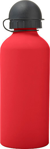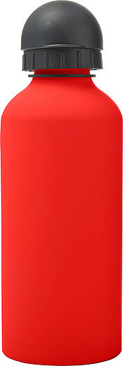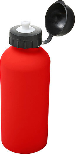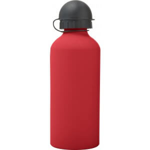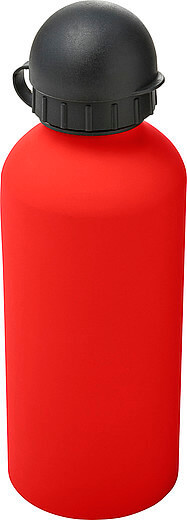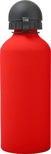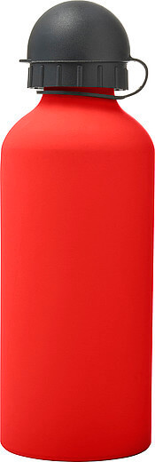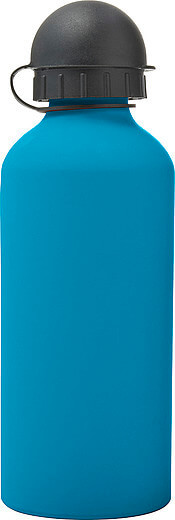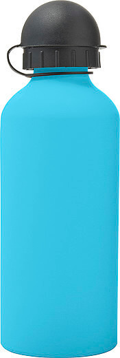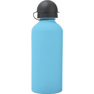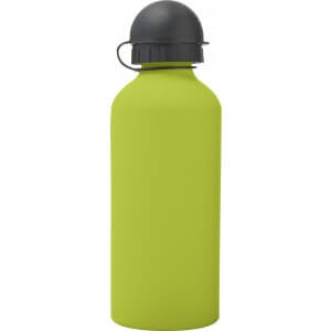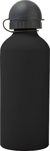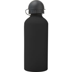 Hliníková fľaša na vodu (600 ml) s gumou, jemným povrchom a čiernym uzáverom na pitie.