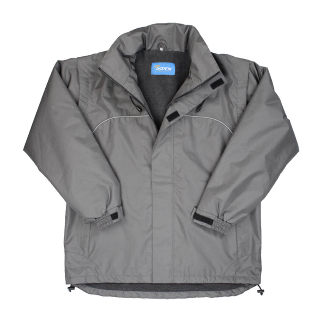 2 v 1: vesta a bunda, odnímateľné rukávy, vnútri fleece, kapucňa skrytá v golieri, reflexné prúžok. 100% polyester.