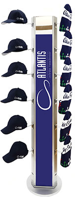 Železo Volně stojící otočný prodejní stojan se zrcadlem na 3 stranách, lze upevnit max 21 kšiltovek, rozměry: 170x40cm, bez držáků na kšiltovky (vhodné držáky: 33.ZD05, 33.ZD06 a 33.ZD07), vyloučena výměna a vrácení, není skladem, dodací termín cca 5-10 dní, pře