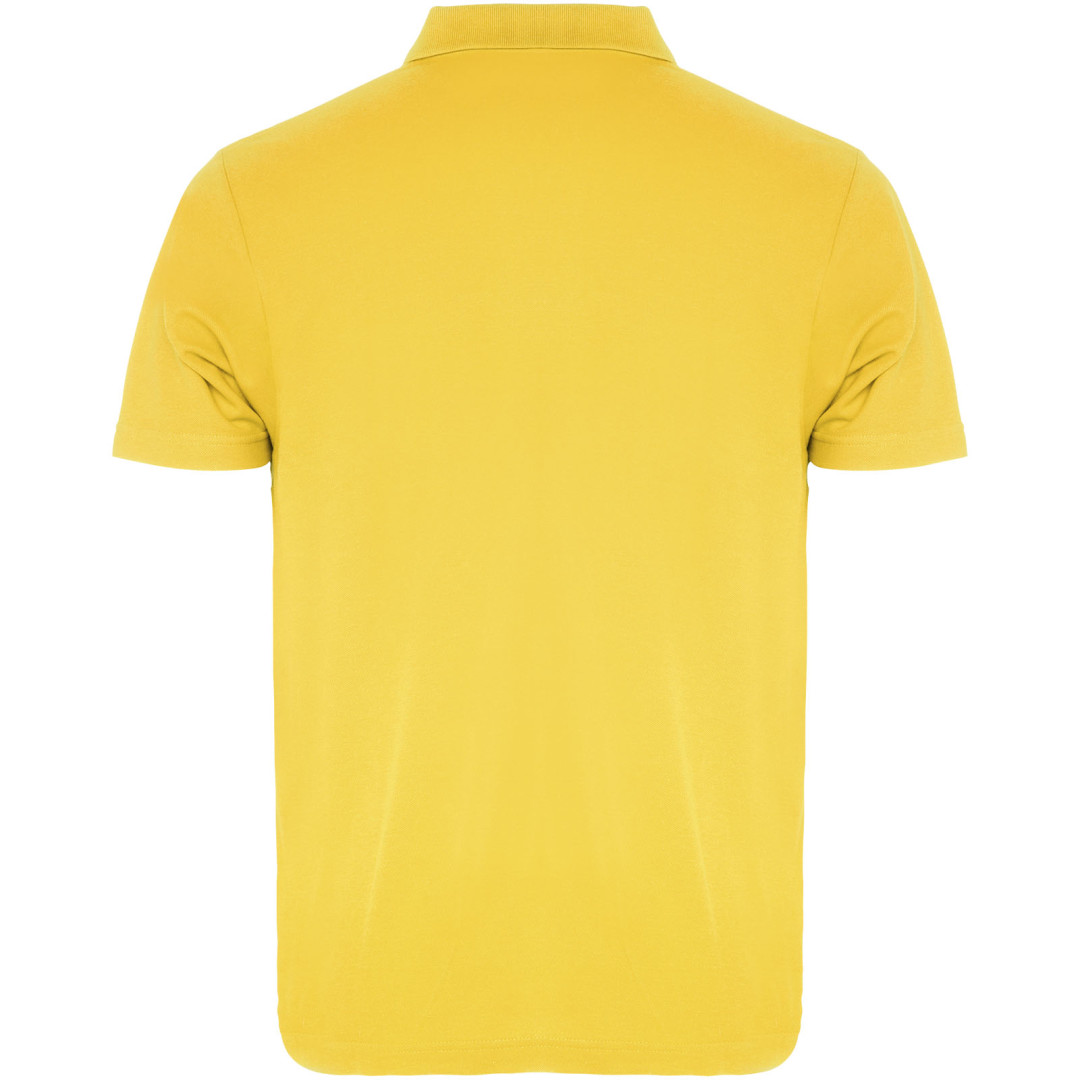 Polokošeľa s krátkym rukávom, zapínaním na 3 gombíky a 1x1 rebrovaným golierom. Zosilnené kryté švy v golieri. Odnímateľná etiketa. Model meria 190 cm a má na sebe veľkosť L.