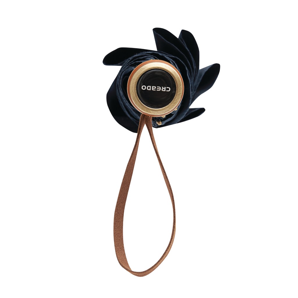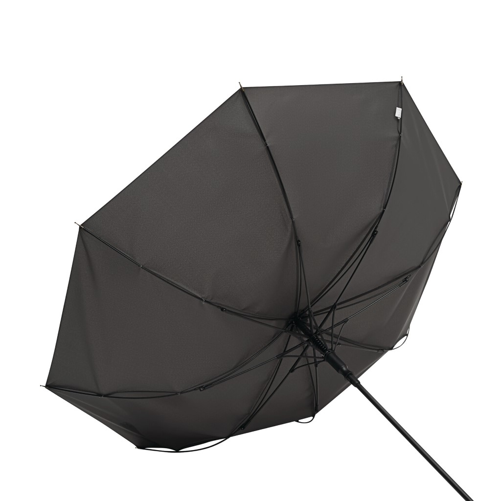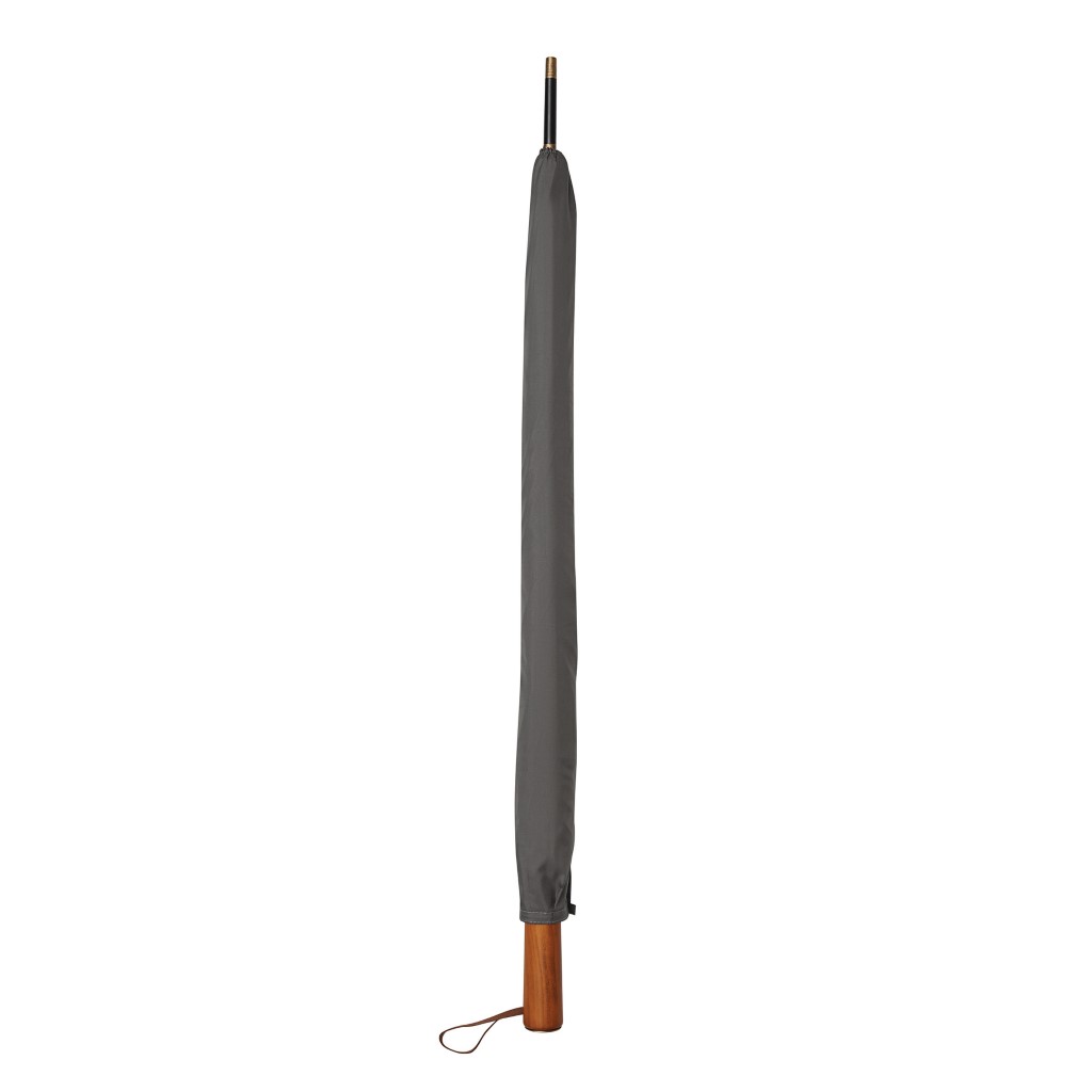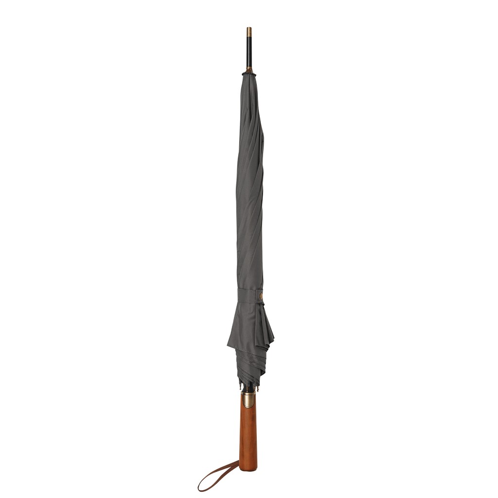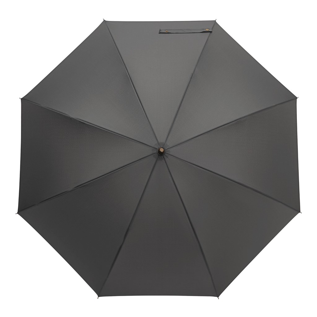 Automatický tyčový dáždnik POLKA: s čiernou kovovou tyčou, rebrami zo sklených vlákien, kovovými hrotmi, rovnou drevenou rukoväťou s mosadzným tlačidlom na automatické uvoľnenie a s výčnelkom "CREADO" na rukoväti, vrchnákom a puzdrom z prvotriedneho polyesterového ponže, zatváracím popruhom so stláčacím tlačidlom