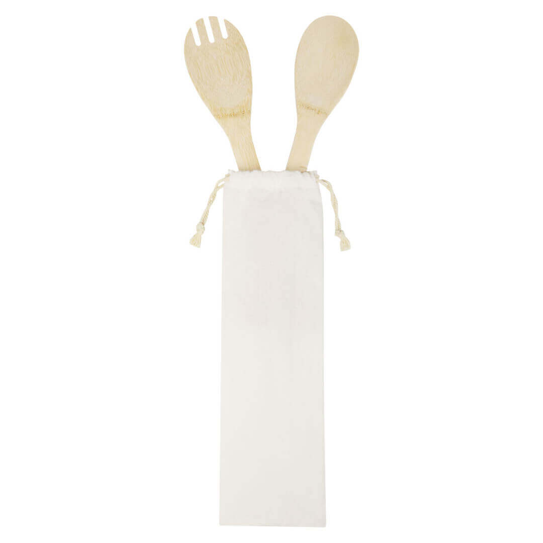 Sada šalátovej lyžice a vidličky z bambusu, ktorá je praktická na každodenné rodinné večere. Použitý bambus sa získava a vyrába v súlade so zásadami udržateľnosti.