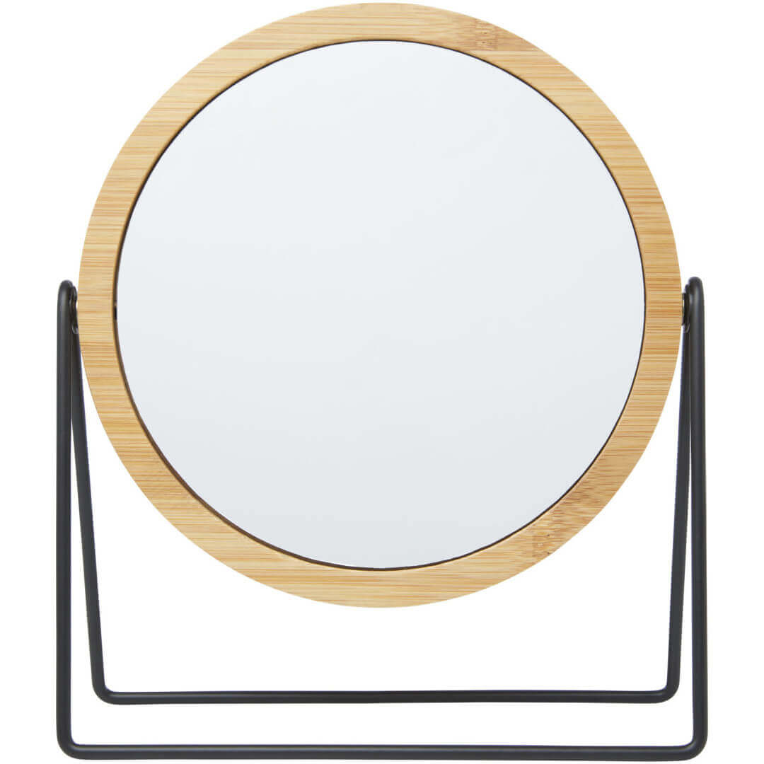 Obojstranné zrkadlo otočné o 360 stupňov pre umiestnenie na stolík alebo dosku. Zrkadlo je vyrobené z bambusu, ktorý sa získava a spracováva v súlade so zásadami udržateľnosti.