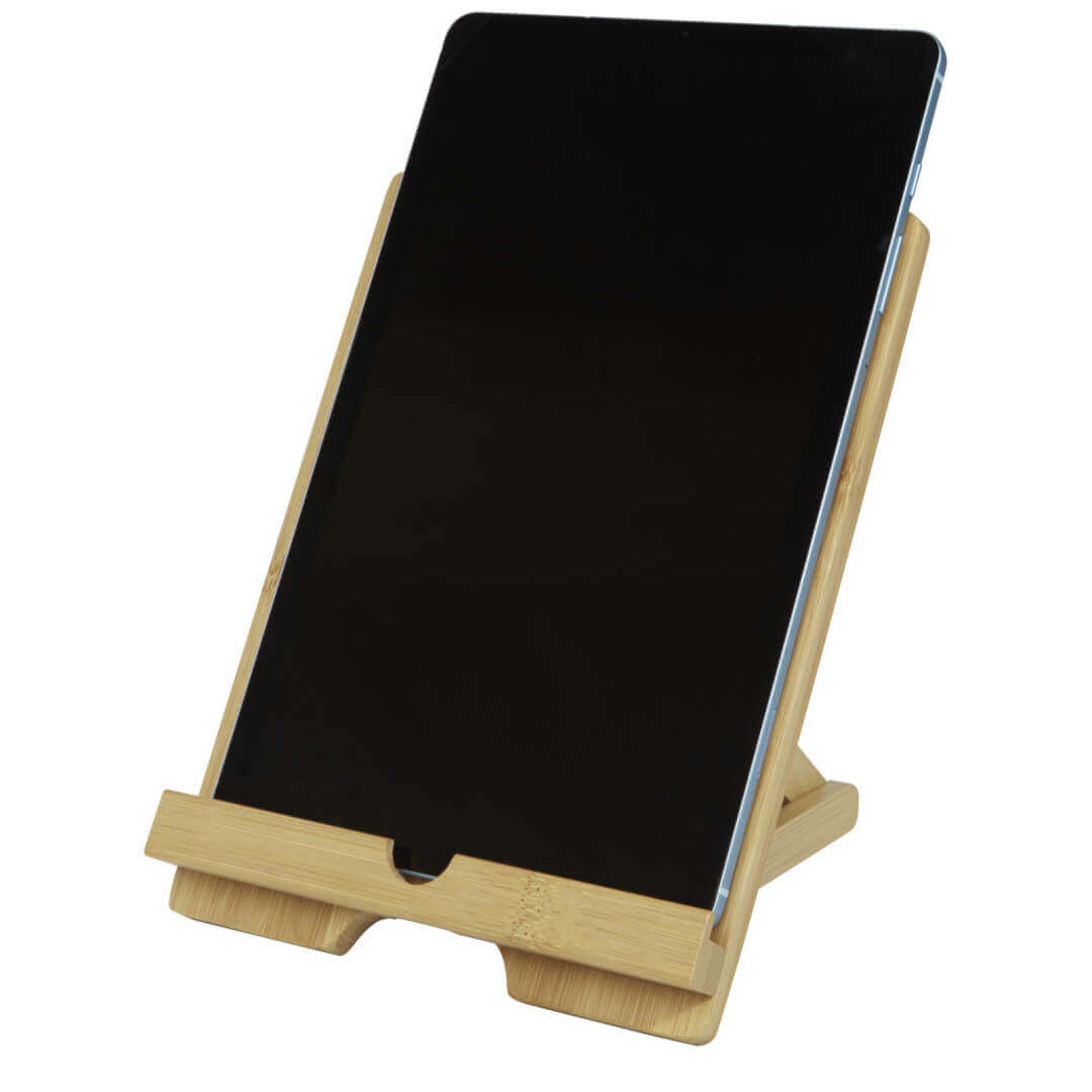 Držiak na tablet vyrobený z bambusu, ktorý sa hodí takmer pre všetky tablety a mobilné telefóny. Uhol pohľadu je možné nastaviť, čo z neho robí perfektný doplnok pri práci, sledovaní filmu alebo v kuchyni pri čítaní receptu. Použitý bambus pochádza z udržateľných, ekologicky a sociálne zodpovedných zdrojov. Držiak na tablet má rozmery 16,5 x 16 x 22 cm. Dodáva sa s návodom na použitie a je zabalený v darčekovej krabičke z recyklovanej lepenky o veľkosti 28,5 x 22 x 4,5 cm.