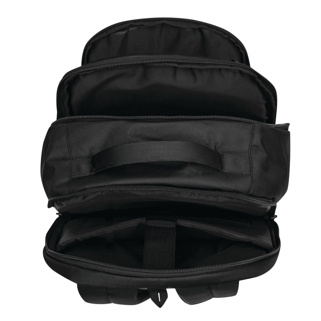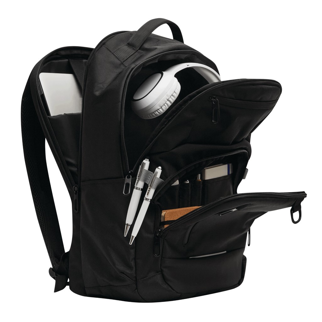 Batoh AARHUS: 1 predná priehradka na zips s organizérom, 1 predné vrecko na zvislý zips, 1 predné vrecko na zips s vodorovným zipsom a zamatovou podšívkou (ideálne na smartfón a pod.), reflexný pásik, 2 zasúvacie vrecká po stranách, 2 hlavné priehradky na zips, jedna s polstrovanou priehradkou na notebook alebo tablet a ďalším zasúvacím vreckom, polstrovaná rukoväť a malé pútko na zavesenie, s D-krúžkom a držiakmi na perá, ergonomicky tvarované polstrované ramenné popruhy a polstrovaný chrbtový panel - výrobok značky Nordic plains