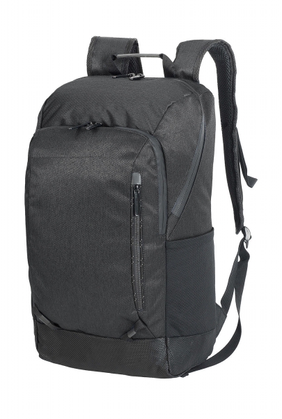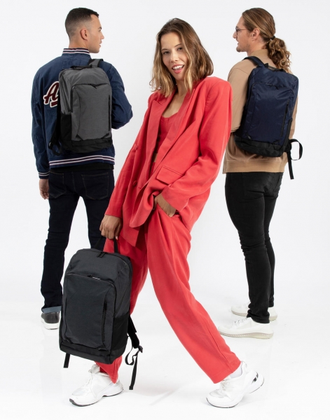 100% polyester (600D Mélange, 420D Jacquard), ľahký funkčný ruksak na notebook, rukoväť na prenášanie, nastaviteľné polstrované ramenné popruhy, sieťovaná podšívka, hlavná priehradka na zips vhodná pre notebooky do 15,6", sieťované vrchné vrecko pre iPad, predná priehradka na zips s vnútorným organizérom, malé vrecko na zips na prednom paneli, 2 elastické bočné vrecká, kapacita: 18 litrov, rozmery: 27 x 16 x 43 cm, vhodné pre sieťotlač, transferovú tlač alebo výšivku, max. výšivka: 14 (tubular hoop), max. plocha pre potlač: 14 x 17 cm