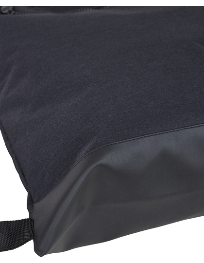Taška z ripstopu/PU 600D so snehovou vločkou, sťahovacia šnúrka, čierno melírované. Hlavný oddiel sa zatvára zatiahnutím za bočné ramenné popruhy. Predná priehradka na zips. Sieťovina na hornom okraji. Spodný okraj vyrobený z PVC. Všetky zipsy sú čierne.