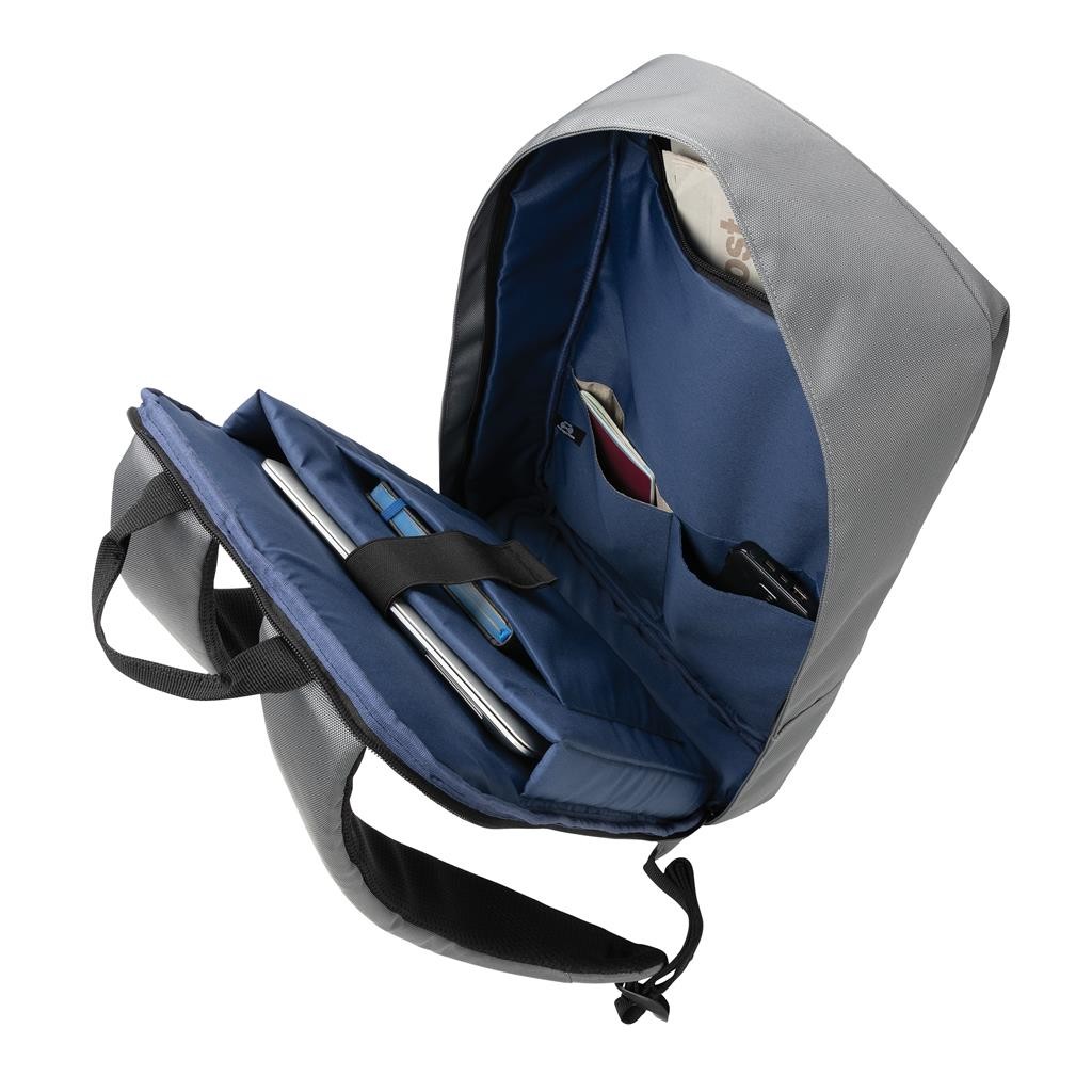 Minimalistický batoh na 15.6" notebook z 1200D polyesteru ideálny na cesty do školy alebo do práce. Priestranný hlavný oddiel, oddiel na bezpečné uchovanie notebooku, pohodlný polstrovaný chrbát, 2 vrecká s RFID ochranou. Vyrobené z recyklovaného polyesteru vrátane skenovateľnej zložky AWARE ™ garantujúci Na výrobu bolo využitých 32,9 500ml PET fliaš a bolo usporených 19,6 litrov vody.Z výťažku každého predaného produktu z kolekcie Impact je navyše prispených 2% na podporu iniciatívy Water.org.