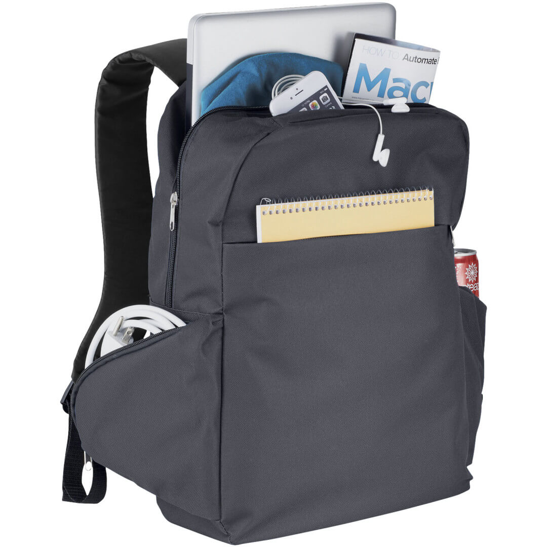 Batoh na laptop 5,6 "l. Veľký hlavný priestor s dvojitým zipsom a čalúneným puzdrom pre väčšinu notebookov 15,6". Štyri ďalšie vrecká s organizér pre väčšinu nevyhnutnosťou. Dve bočné priehradky na zips ideálne pre káble, nabíjačky, atď. Veľký Predné vrecko na zips. Vystužený chrbtový panel, dvojité polstrované nastaviteľné ramenné popruhy. Horná rukoväť. Príslušenstvo nie je súčasťou balenia. 600D Polyester.
