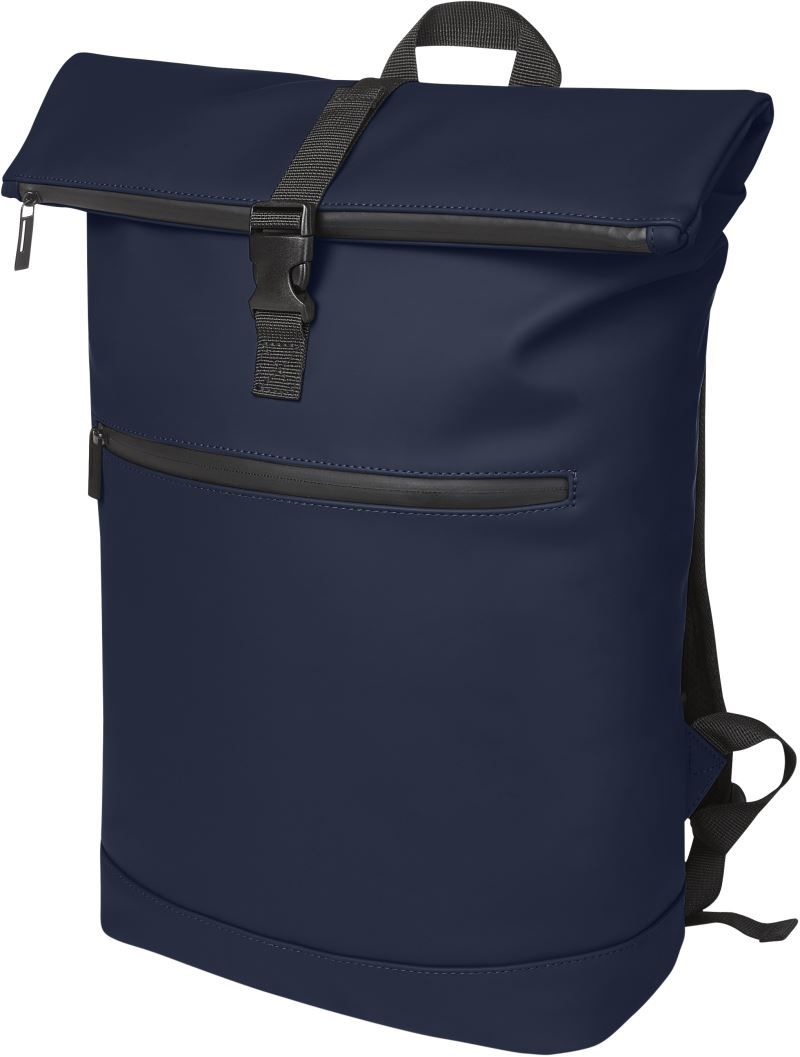 Zosilnené dno, rukoväť, nastaviteľné a polstrované ramenné popruhy, vodoodpudivé zipsy, predné vrecko na zips, polstrovaný obal pre laptop, rozmery: 28x43x13cm.