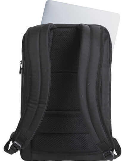 Polyester 1680d a Polyester 600d. Elegantný a efektívny business batoh. Polstrovaná hlavná priehradka s obojsmerným zipsom, prvky organizéra, polstrovaná priehradka a sieťovaná priehradka na zips. Veľké polstrované vrecko na notebook so samostatným prístupom