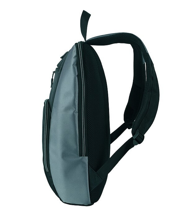 Ľahký batoh značky Schwarzwolf s vystuženou časťou na chrbát v čiernej farbe so zeleným lemovaním. Batoh obsahuje jednu veľkú kapsu na notebook so zipsom a vnútri vrecko na suchý zips. V predu je jedno menšie vrecko a jedno väčšie vrecko, ktorá v sebe zahŕňa dve väčšie a dve menšie priehradky, dve priehradky na perá a jednu sieťované vrecko na zips. Objem: 15 l. Hmotnosť: 470 g. Materiál: 1680D polyester. Rozmery: 34 × 10 × 42 cm.